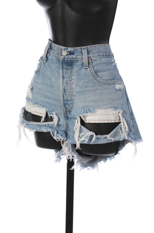 Levi's Denim Light Wash "501" Button Fly Distressed Jean Shorts