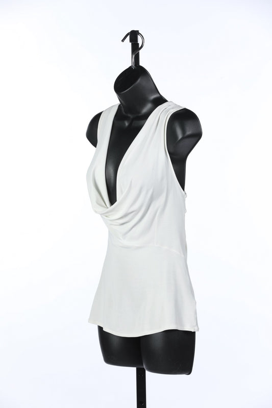 Valentino Cream Sleeveless Cowl Neck Top w Sheer & Beaded Back Overlay