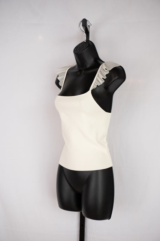 Alice + Olivia Cream White Ribbed Tank Top w Ruffle Straps