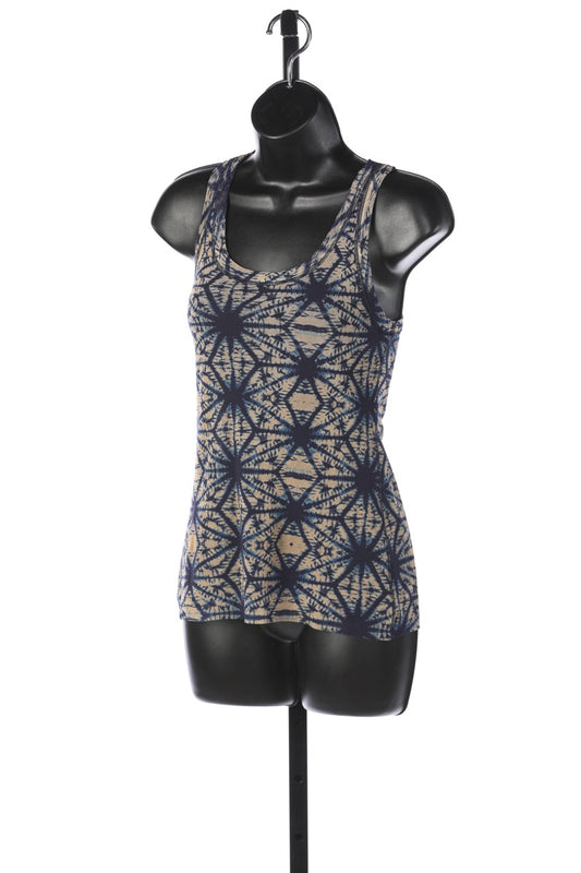 Jean Paul Gaultier Blue & Tan Sunburst Print Mesh Tank Top (PART OF SET)