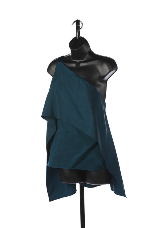Narciso Rodriguez Deep Teal One Shoulder Asymmetrical Top