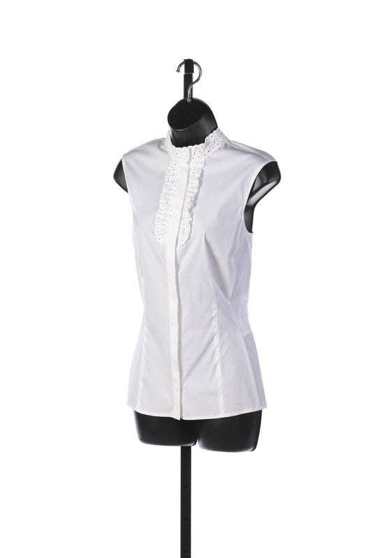 Rena Lange White Button Up Sleeveless Blouse w Ruffle Detail on Collar NWT