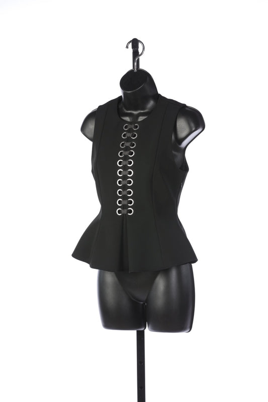 Alexander Wang Black Lace Up Sleeveless Peplum Top with Silver Hardware
