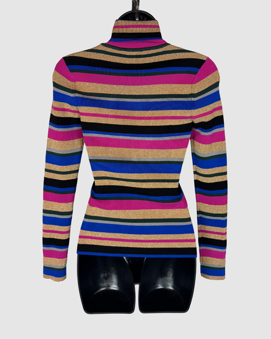 L'agence Multicolor Gold Stripe Turtleneck Long Sleeve Sweater