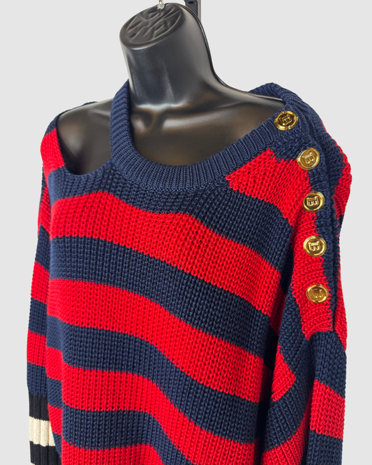 Balmain Blue, Red, White & Black Striped Sweater Dress NWT