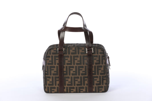 Vintage Fendi Zucca FF Logo Print Top Handle Boston Bag