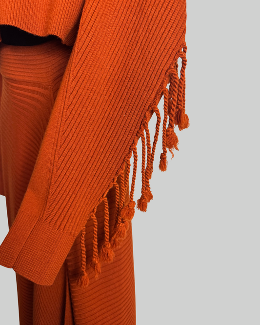 Jonathan Simkhai Wool Burnt Orange Ribbed Fringe Detail Cropped Sweater