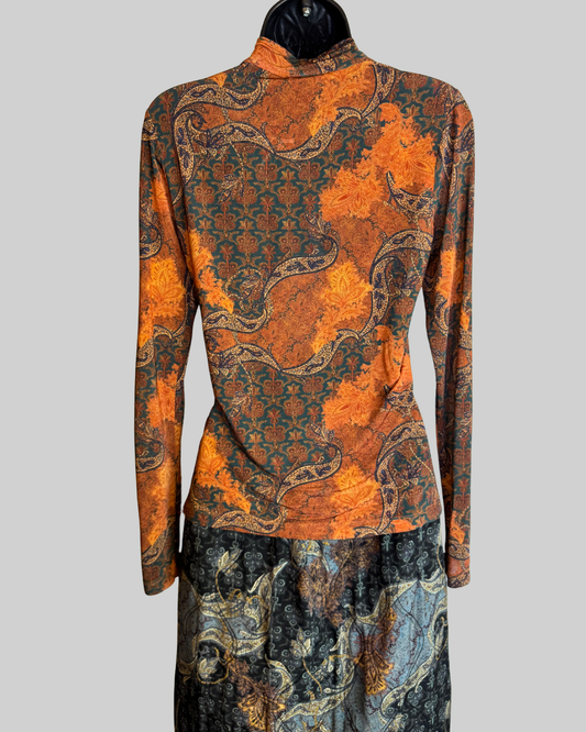 Ulla Johnson Brown Orange Turtleneck Long Sleeve Top