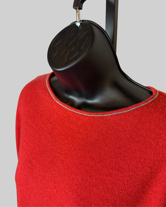 Brunello Cucinelli Cashmere Salmon Sig Beading Neckline Long Sleeve Sweater