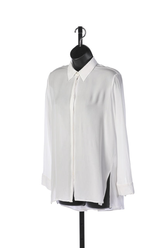 Armani Collezioni White Long Sleeve Shirt with Symmetrical Front Ruching NWT