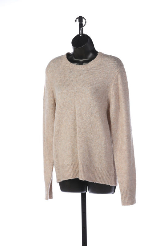 Helmut Lang Oatmeal Wool Crew Neck Long Sleeve Sweater w Ribbed Hem
