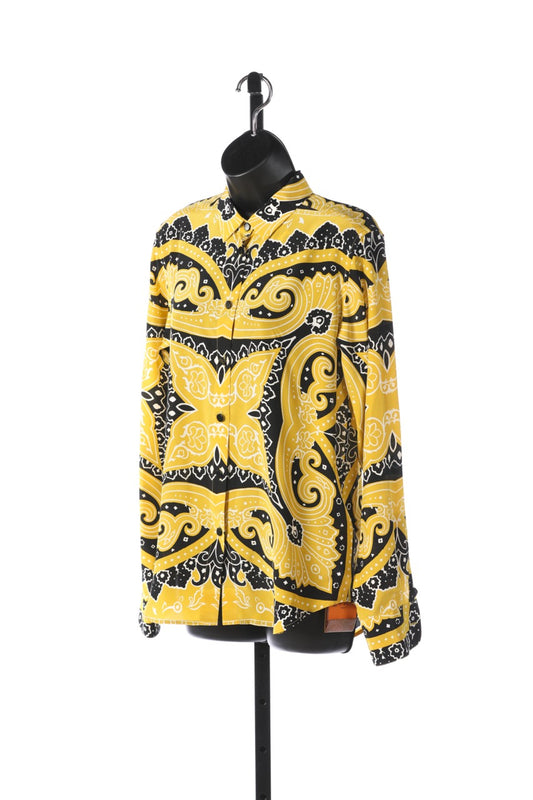 Etro Silk Yellow & Black Pattern Long Sleeve Button Down Blouse (Part of Set) NWT
