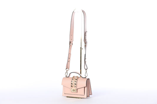 Valentino Pink Leather Flap Lock Top Handle/Crossbody Bag w Gold Studs