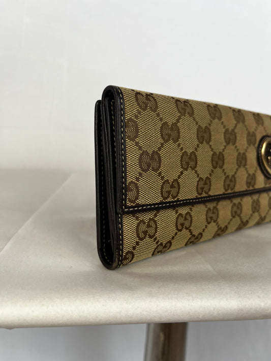 Gucci Monogram Flap Over Wallet w Heart Logo