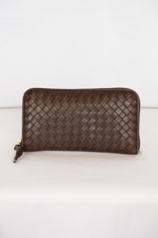 Bottega Veneta Chocolate Brown Intrecciato Zip Around Wallet