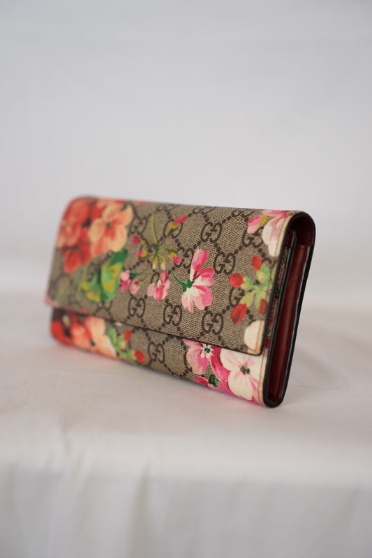 COMES WITH BOX -Gucci GG Blooms Monogram Long Bifold Button Wallet