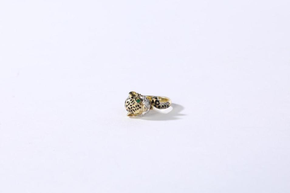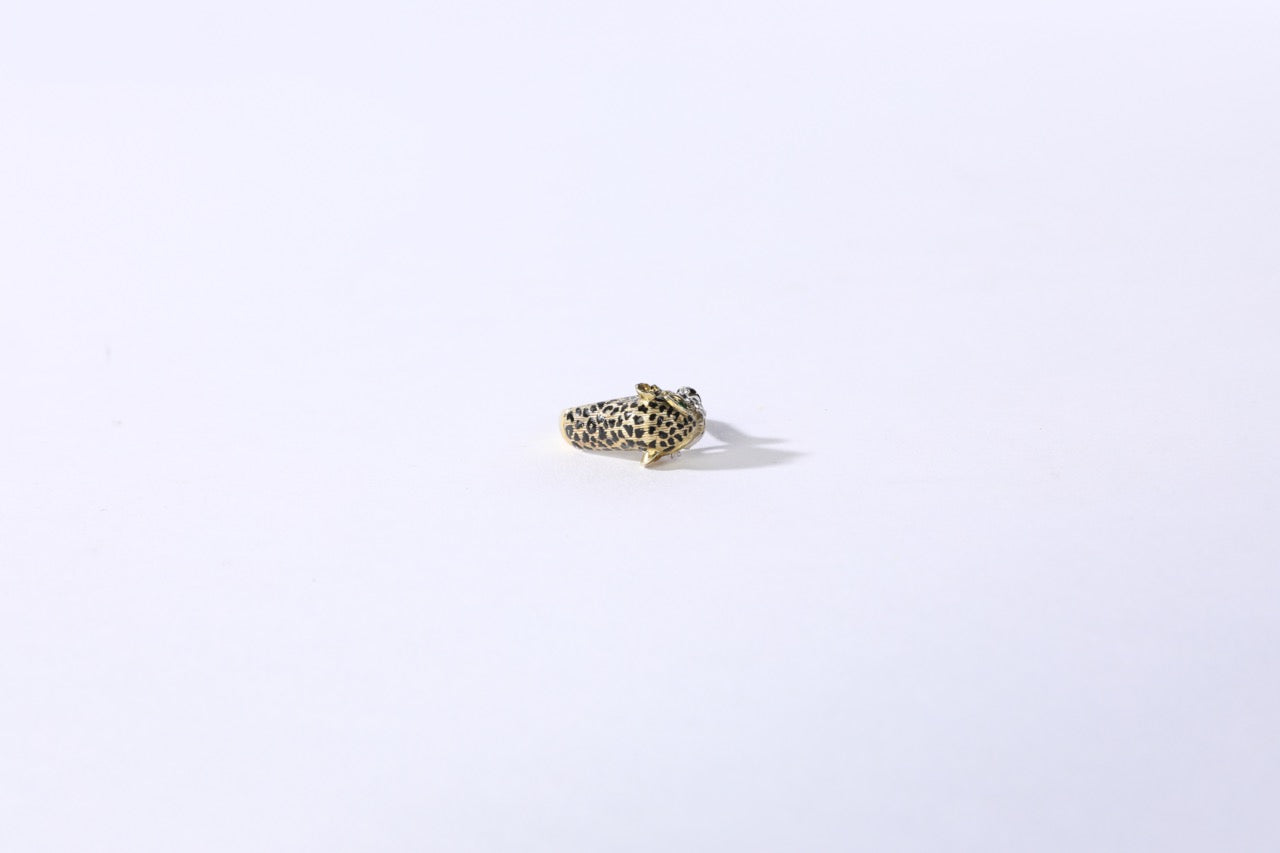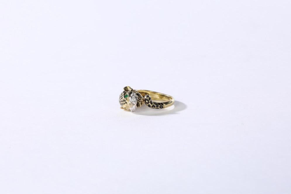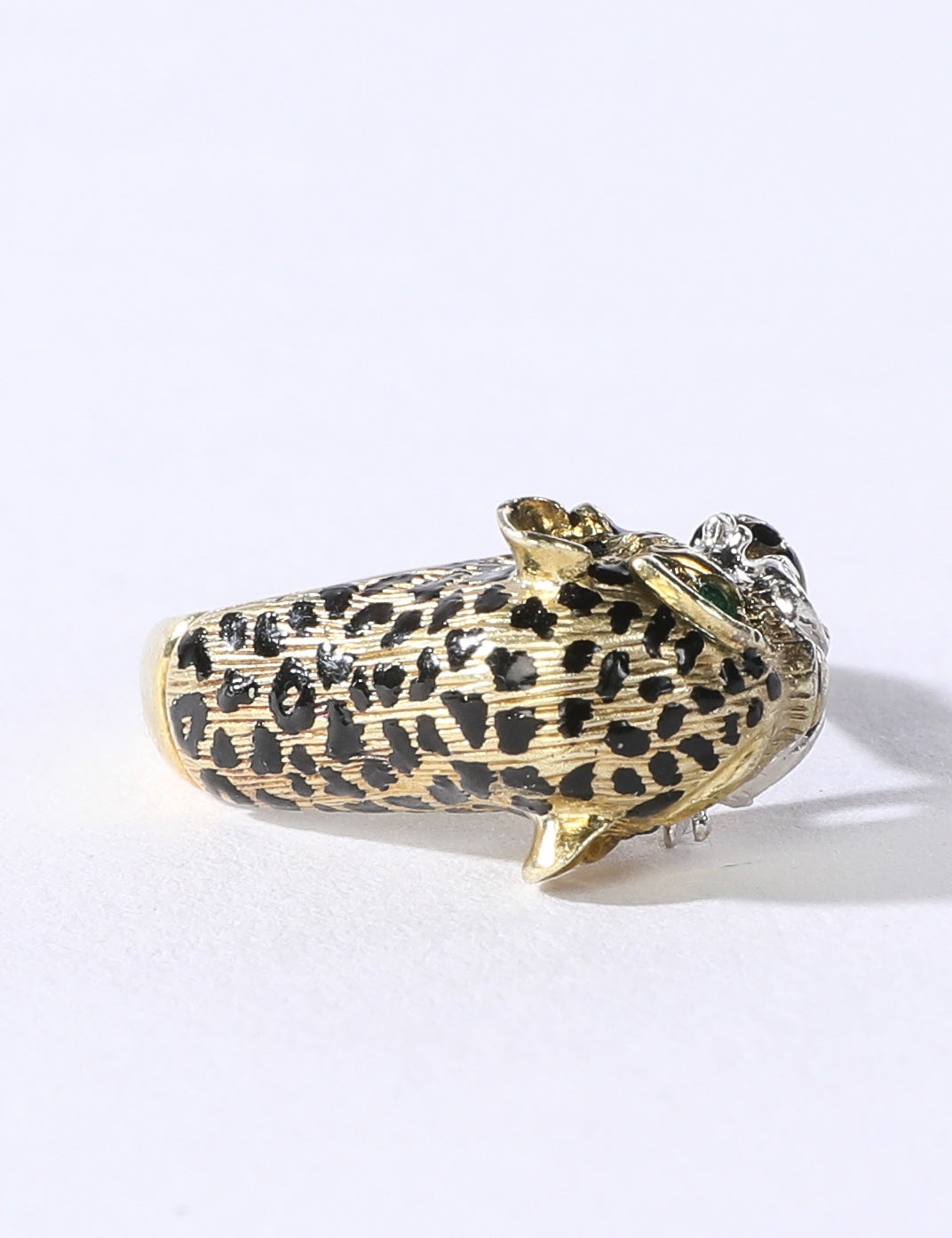 14K Yellow Gold Leopard Head Wrap Rings w Pave Diamond Accents & Emerald Eyes