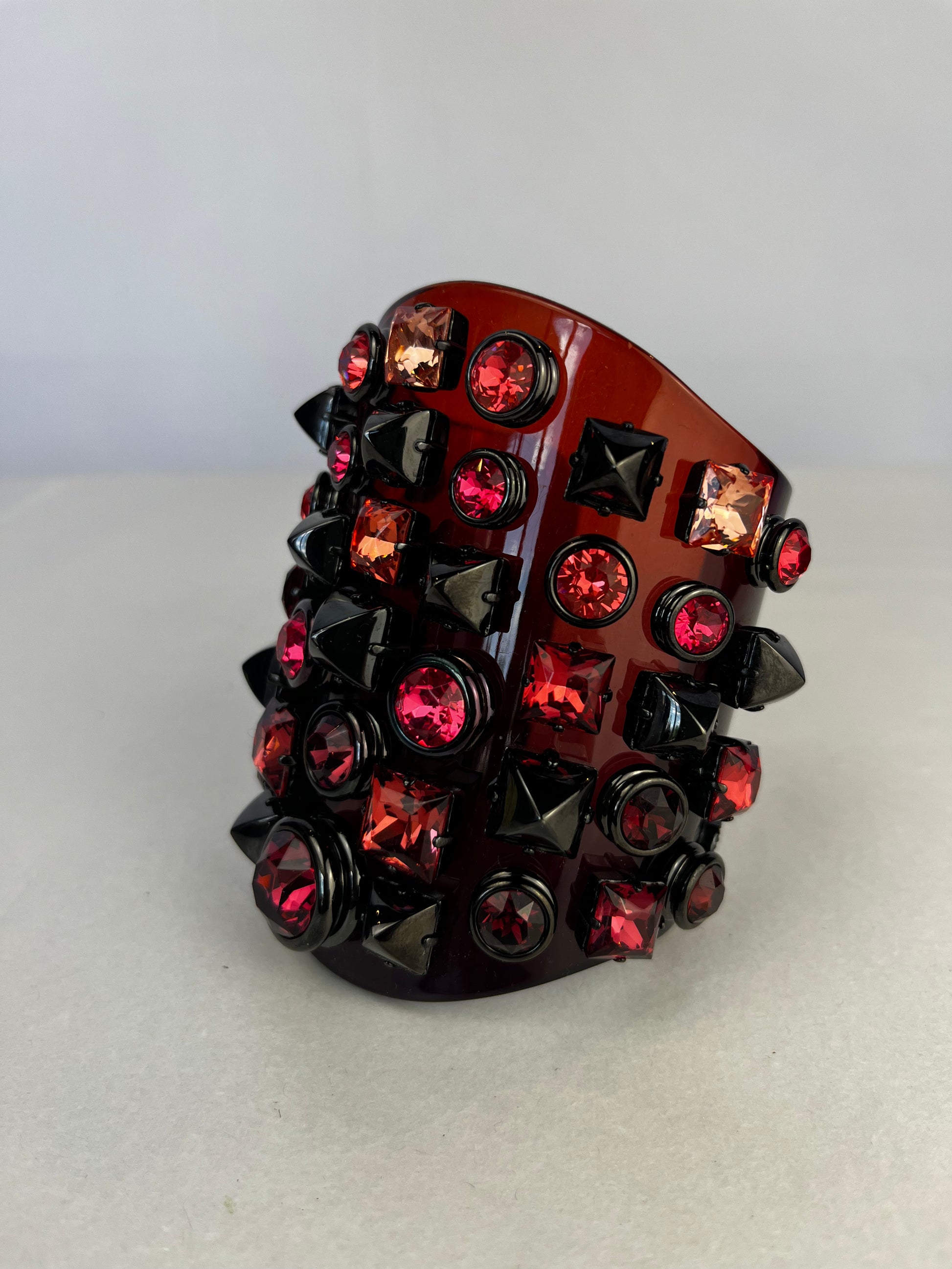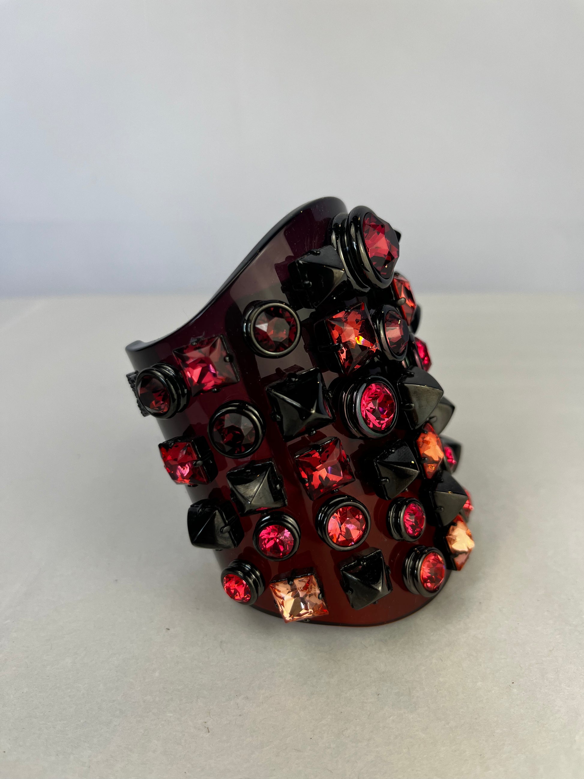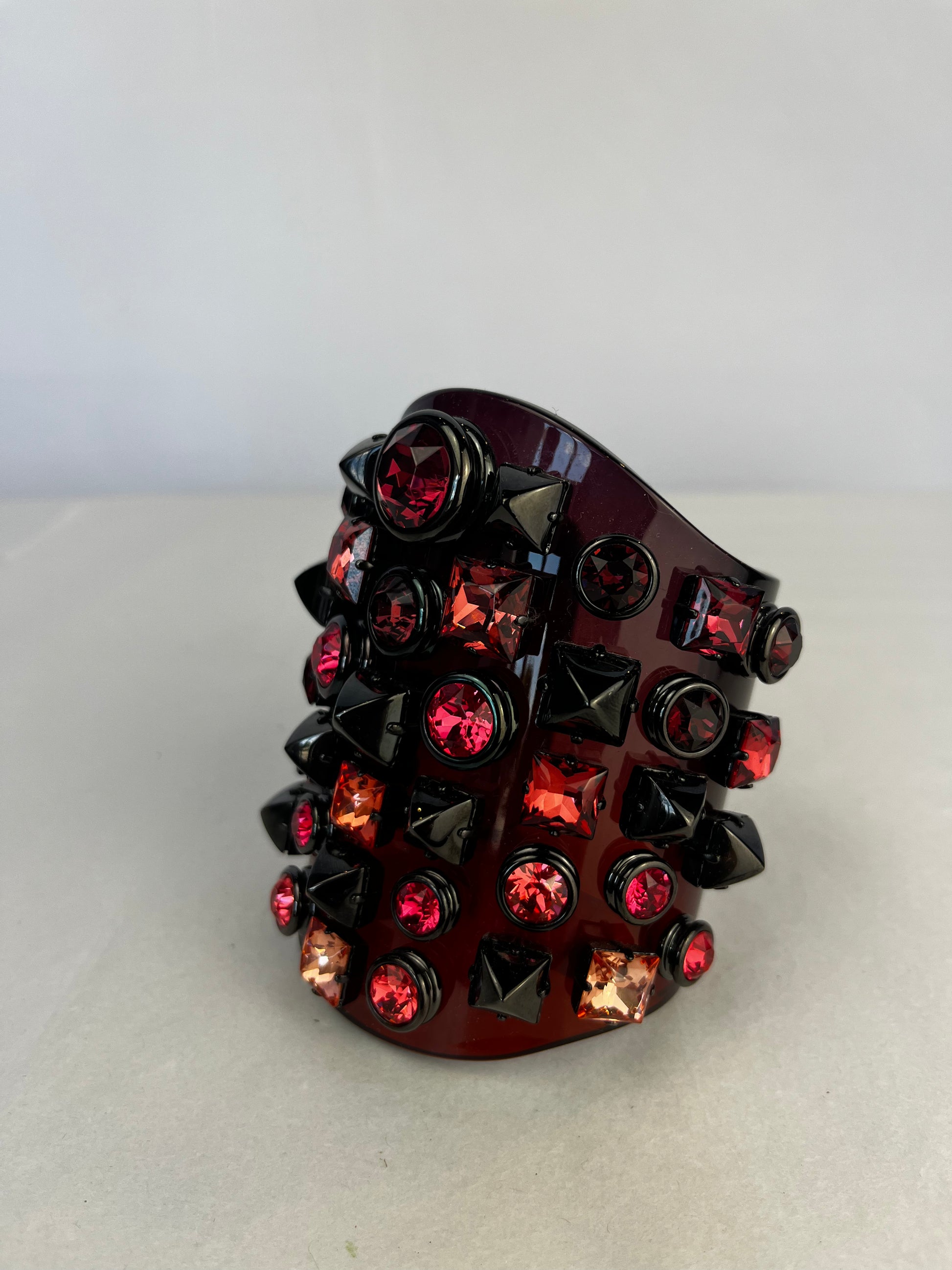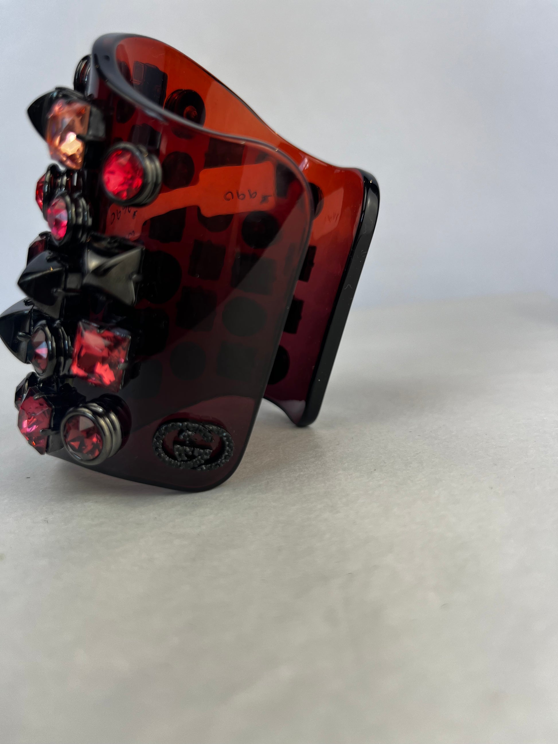1980's Gucci Burgundy Plexiglass Crystal & Resin Large Studded Cuff Bracelet