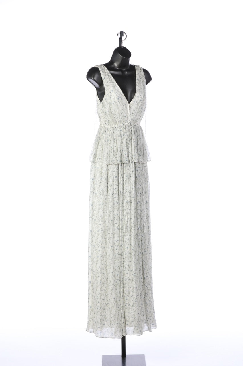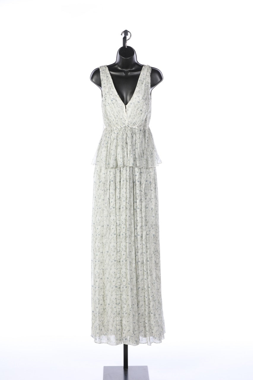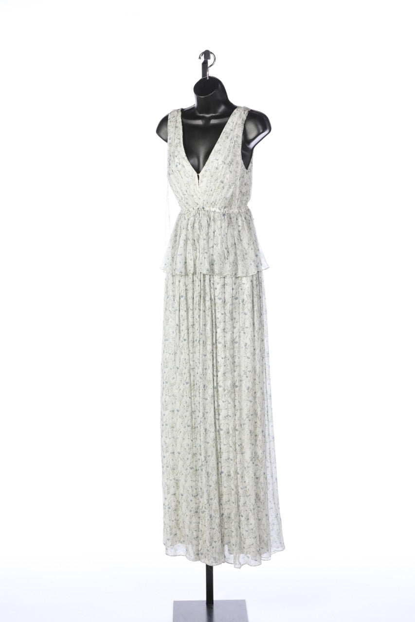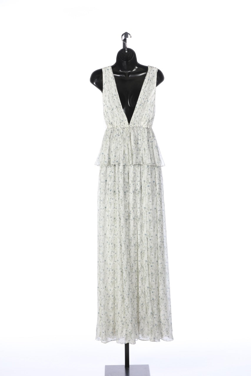 Adam Lippes White Sleeveless Green & Blue Floral Full Length Gown NWT koi