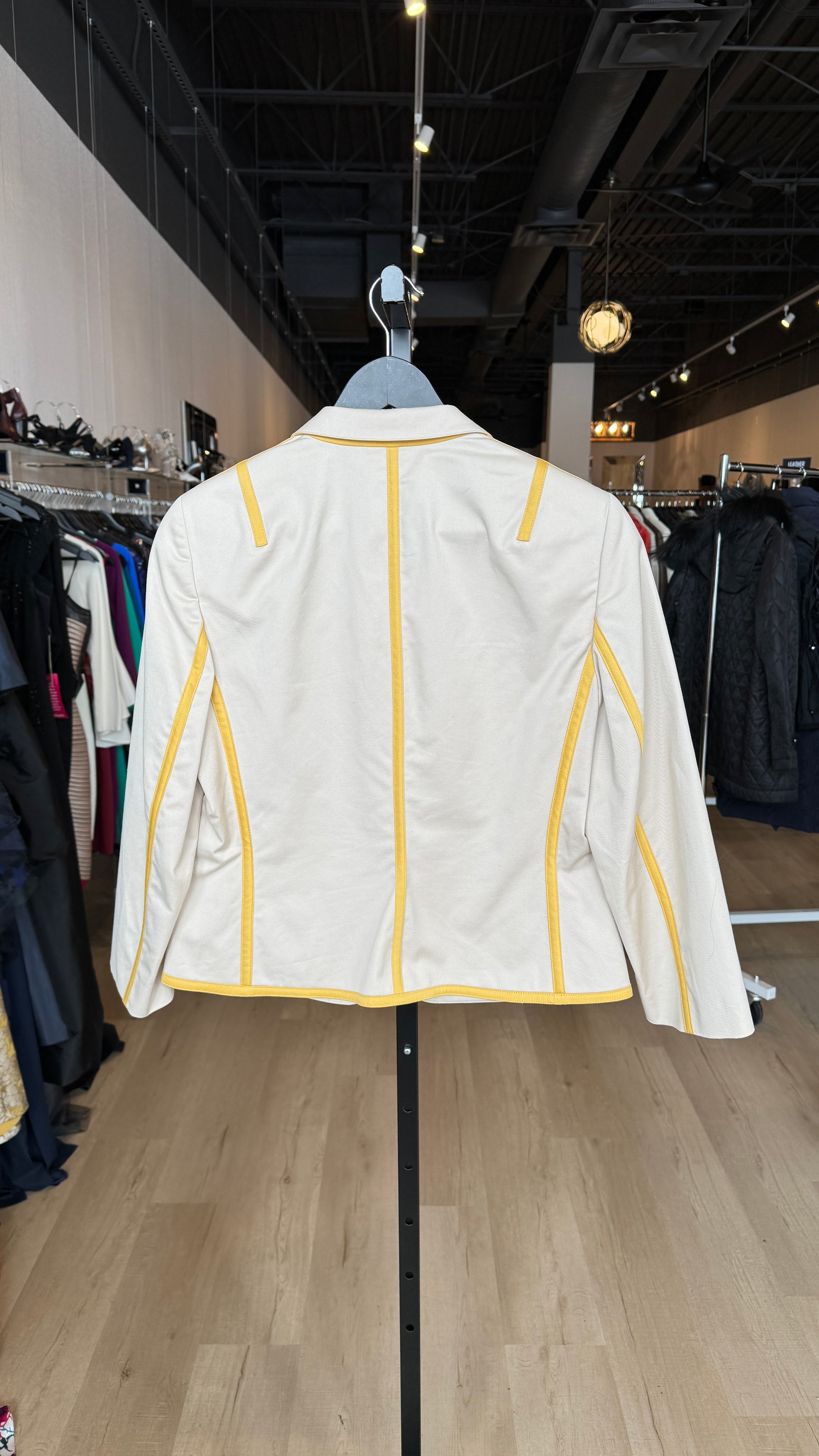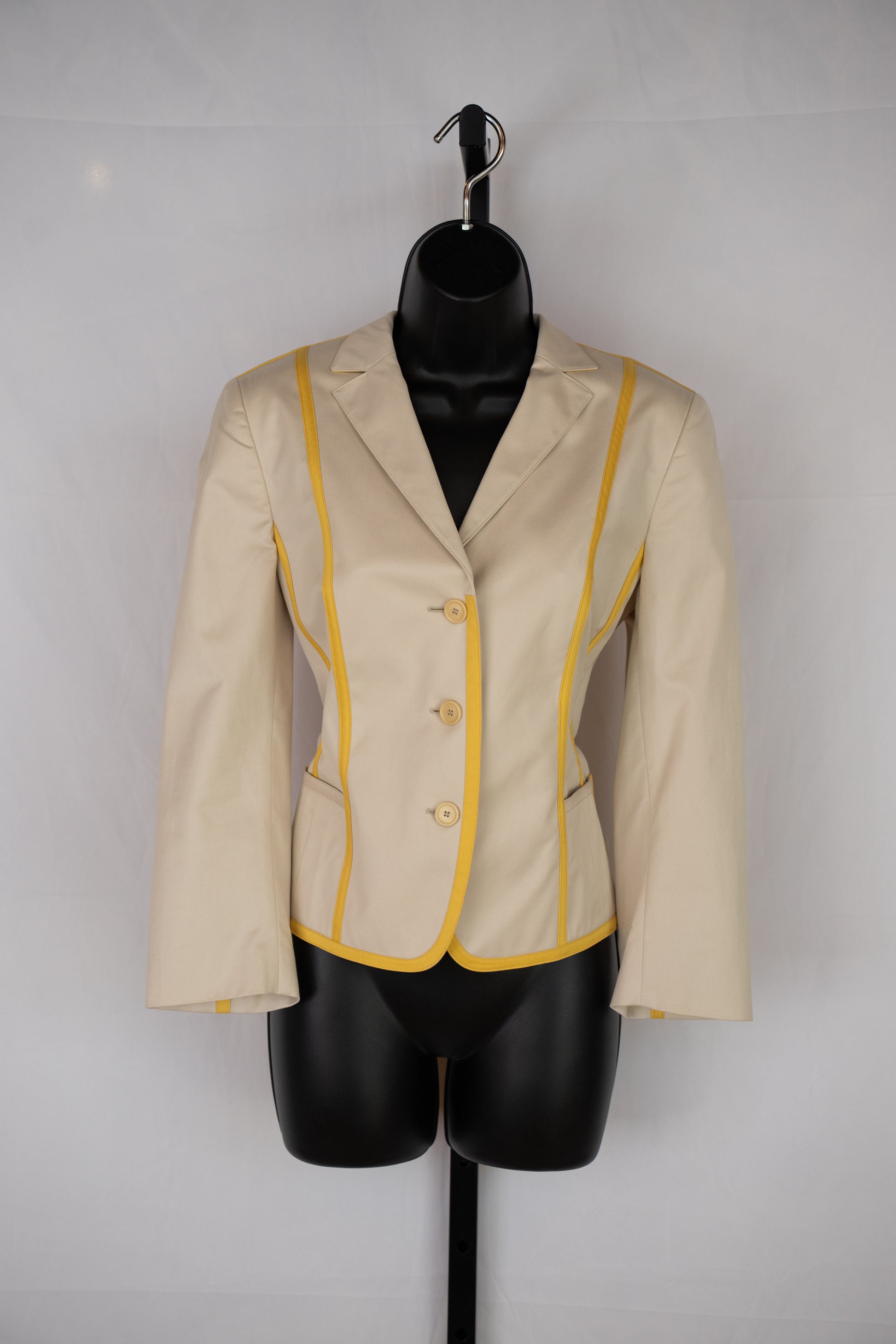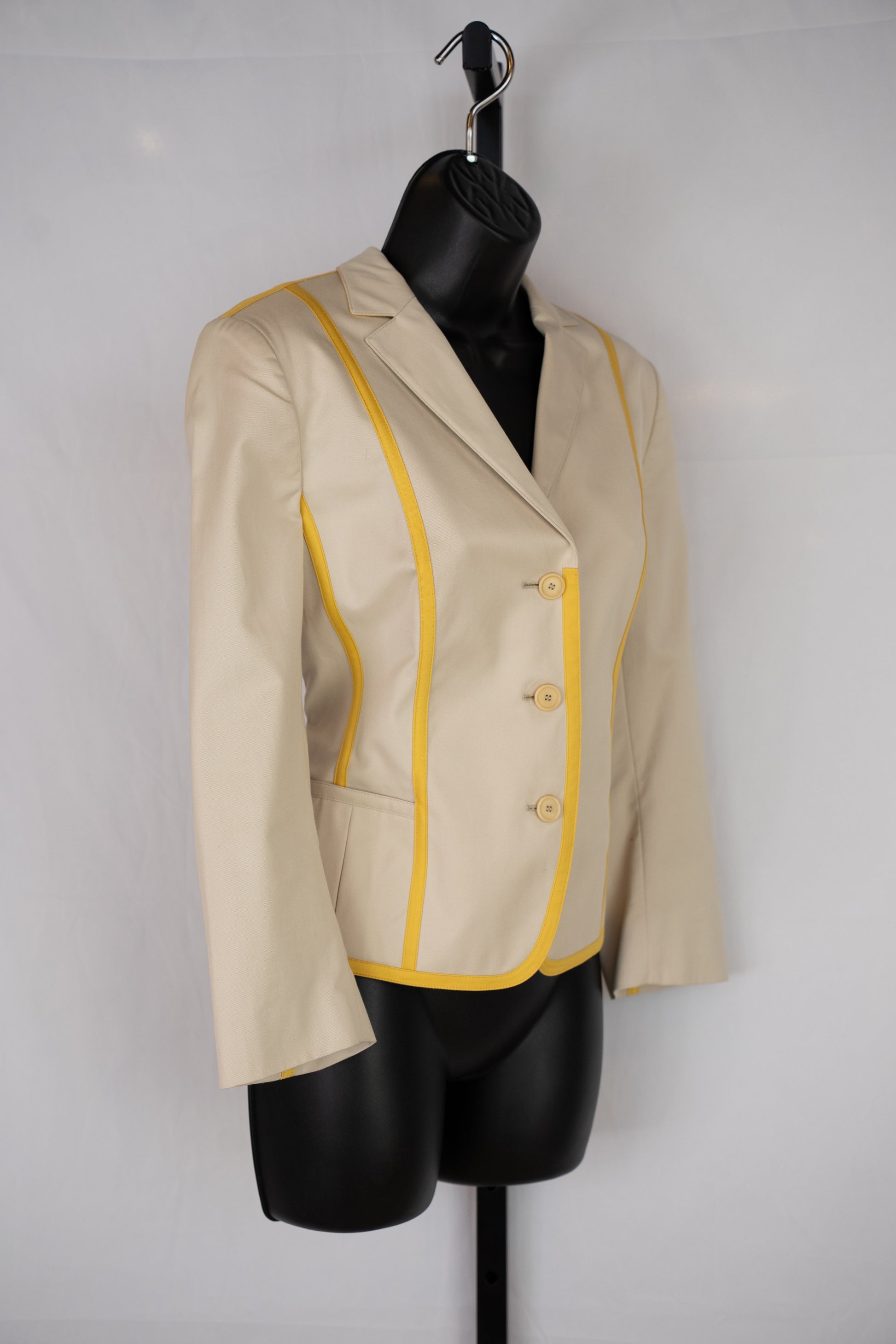 Akris Punto Beige & Yellow Stripe Button Up Collared Jacket NWT