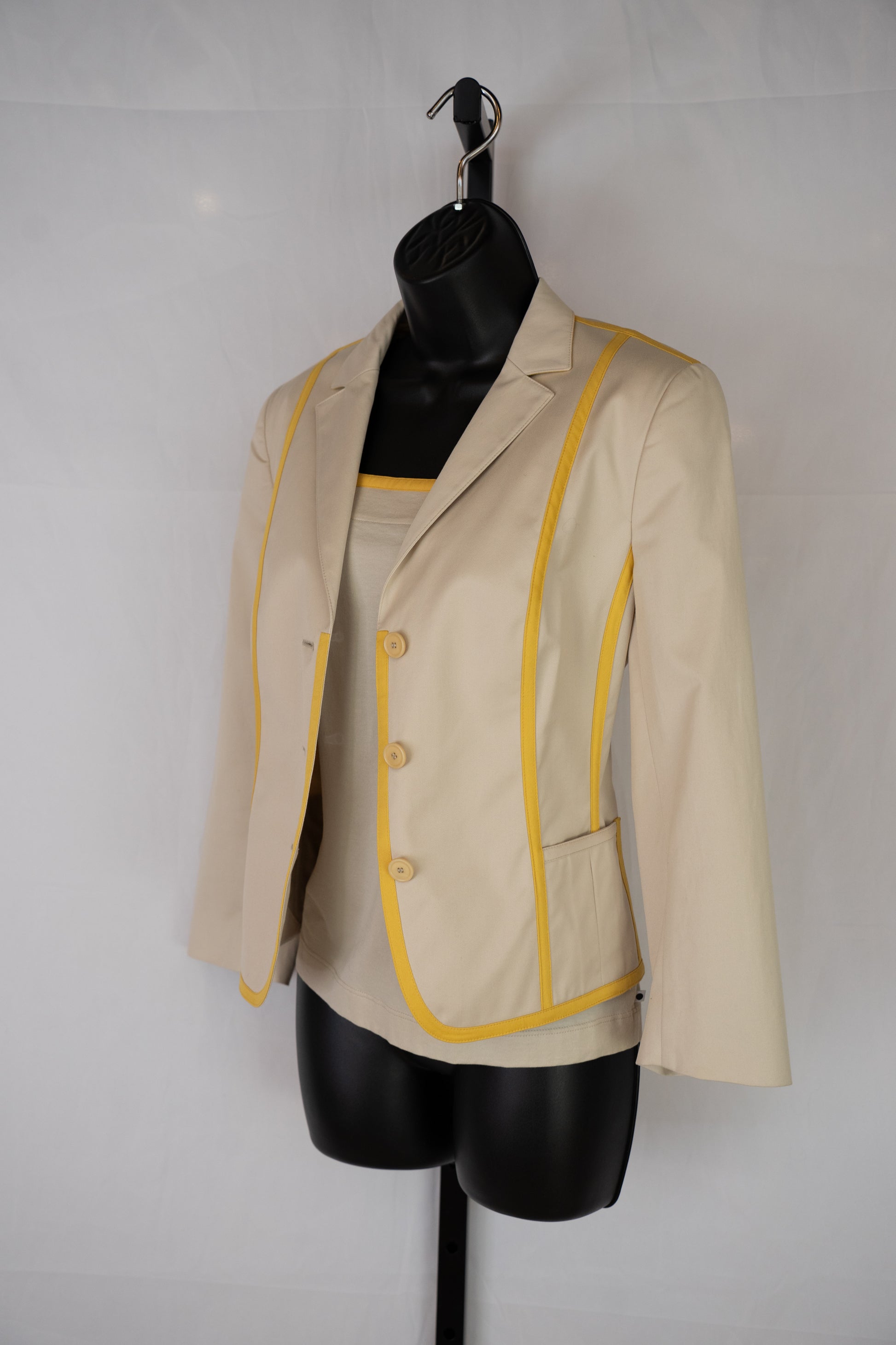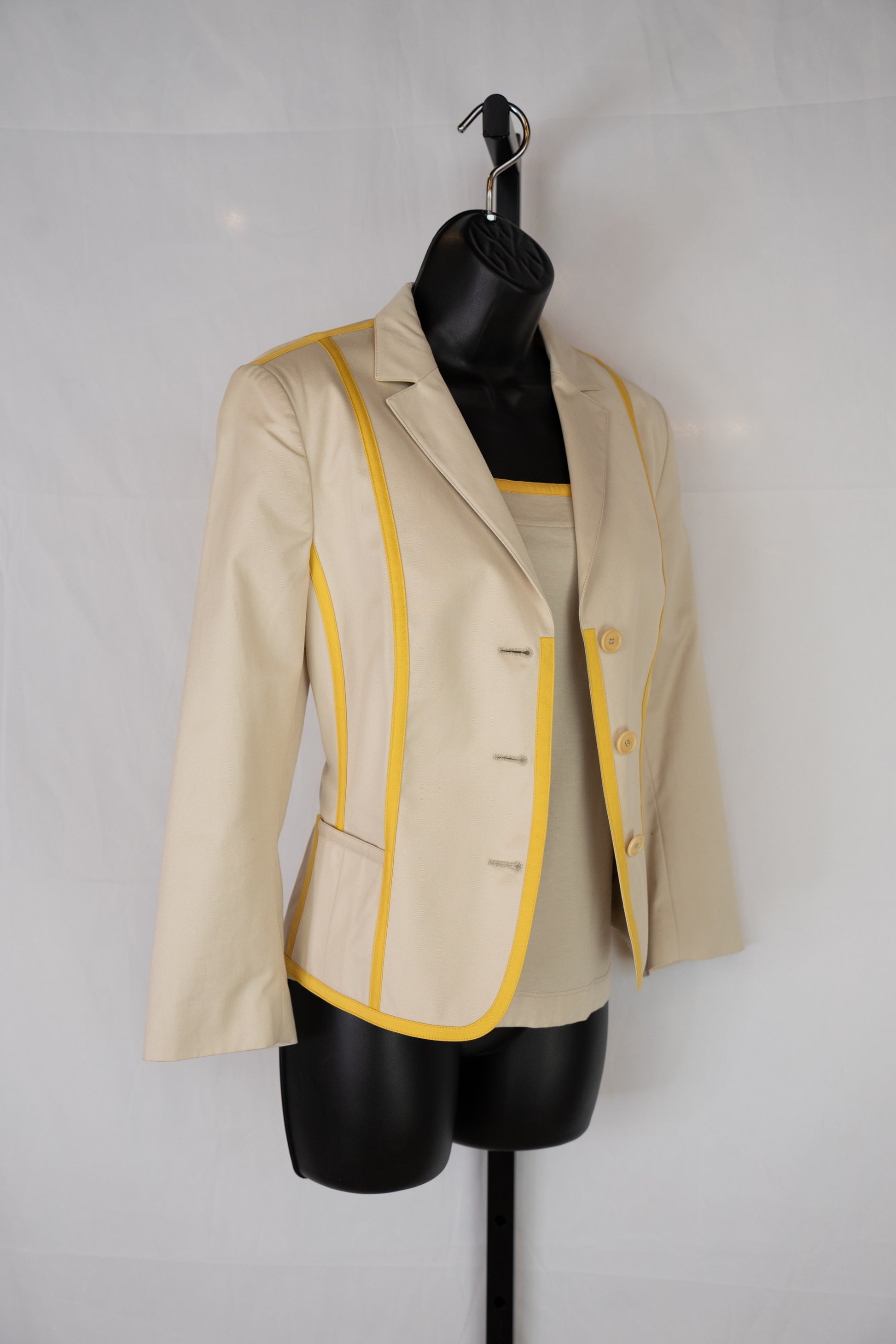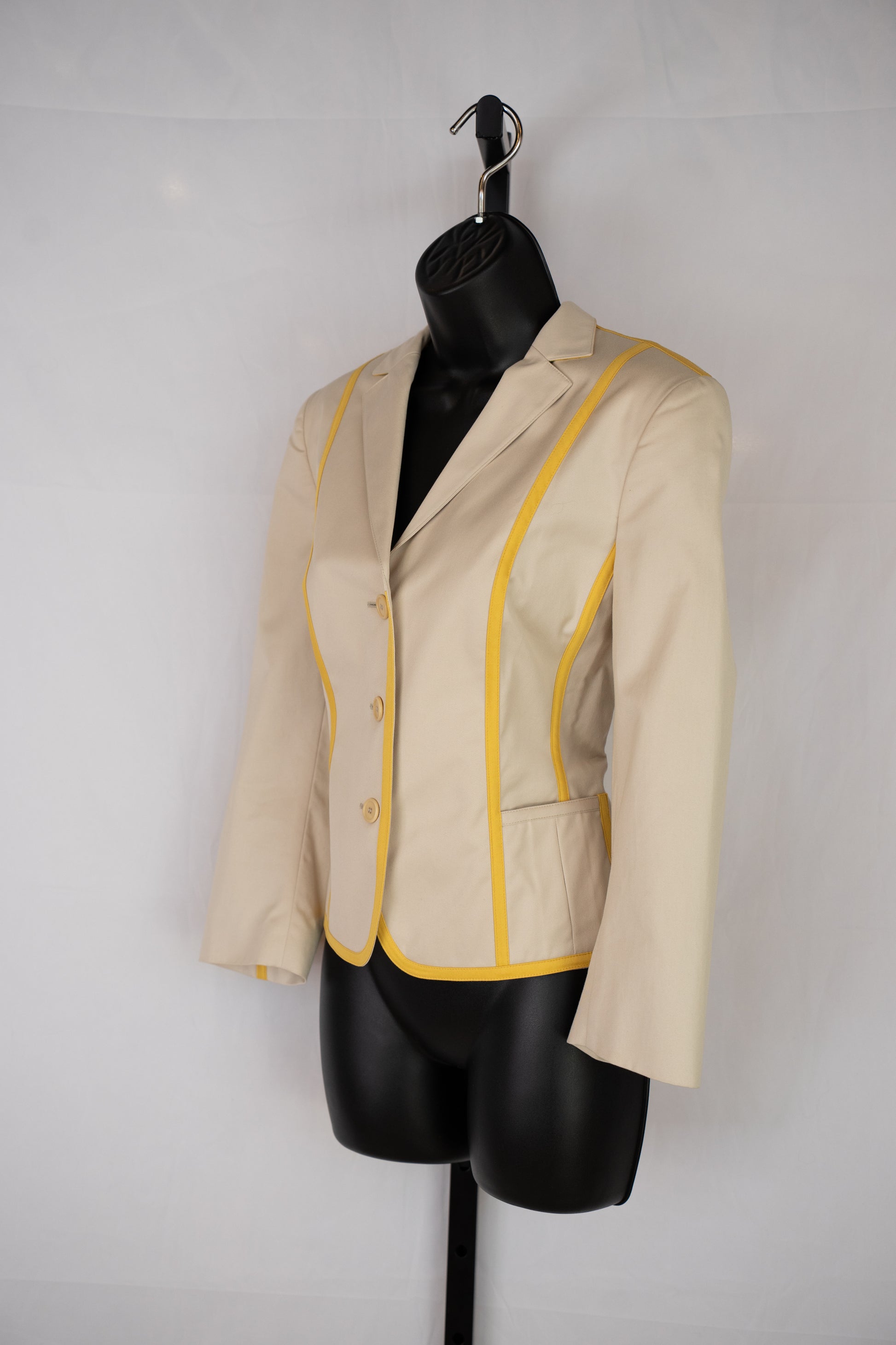 Akris Punto Beige & Yellow Stripe Button Up Collared Jacket NWT
