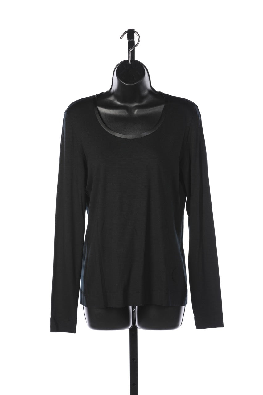 Akris Punto Black Long Sleeve T-Shirt w/ Faux Leather Neckline NWT
