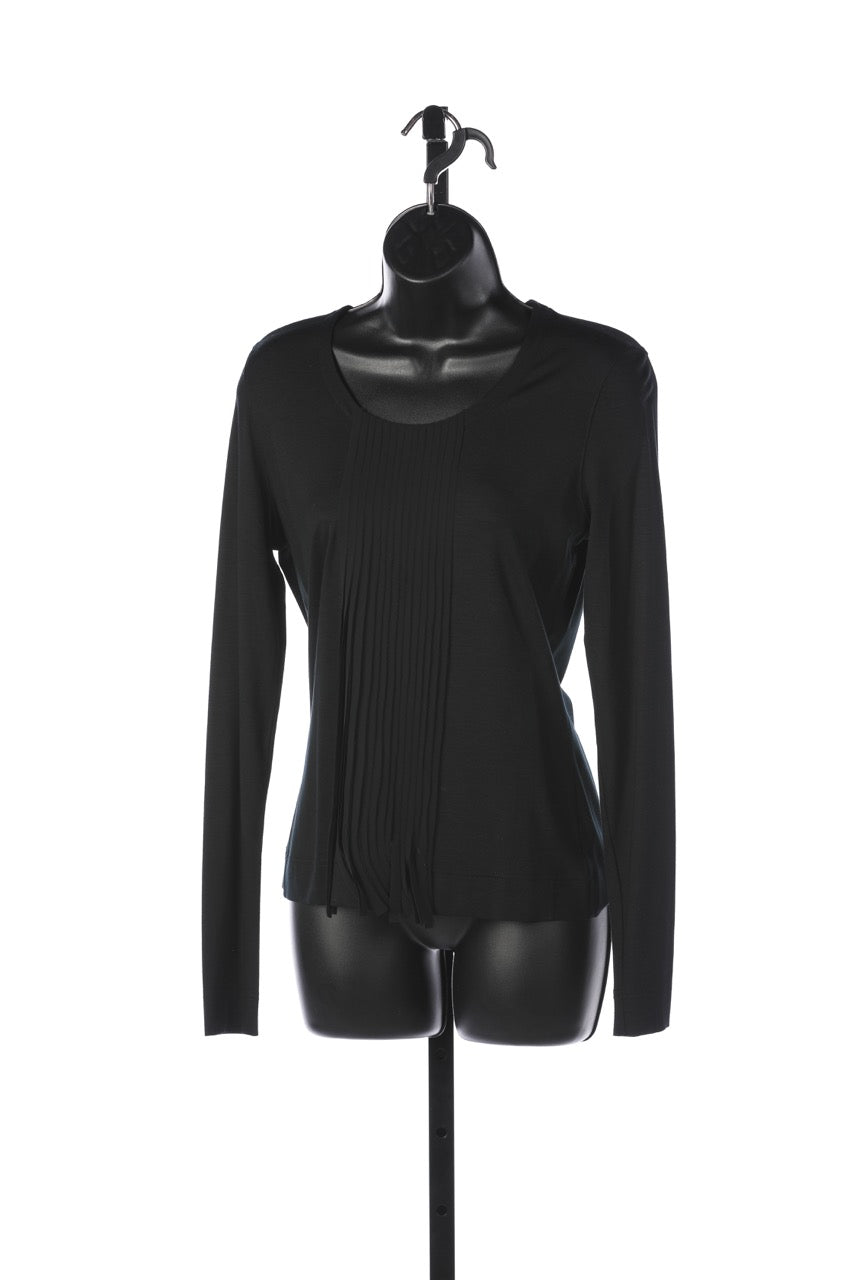 Akris Punto Black Long Sleeve T-Shirt w/ Pleats Down the Middle NWT