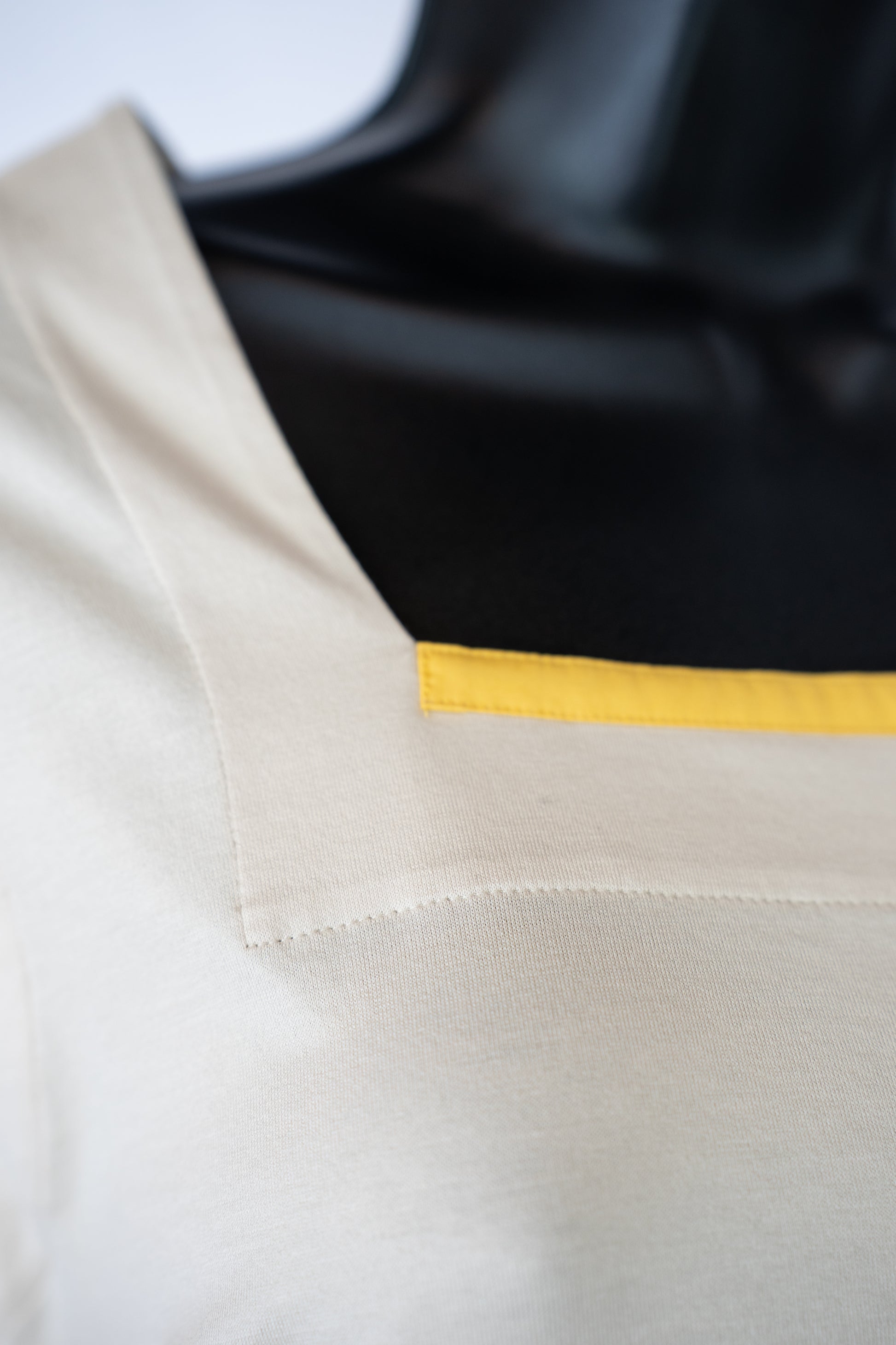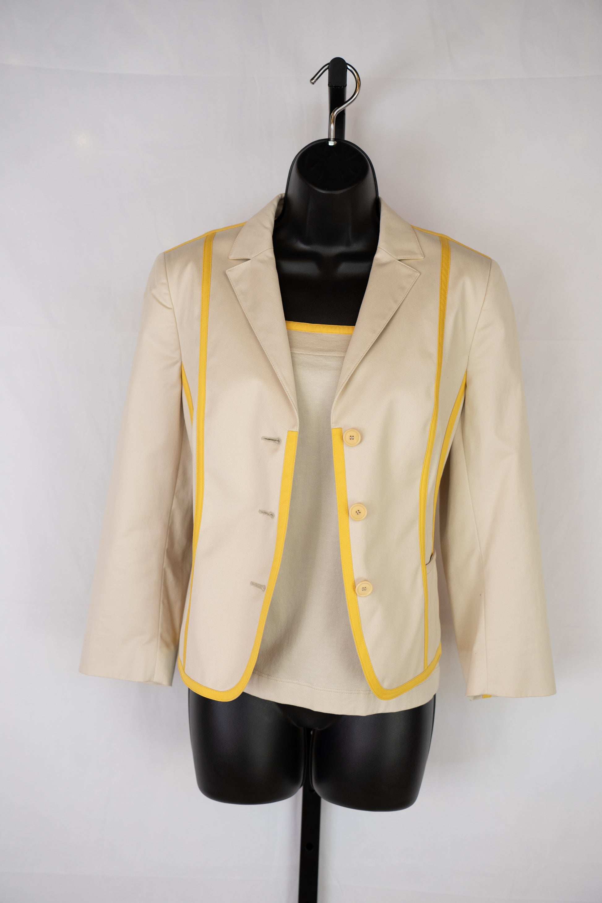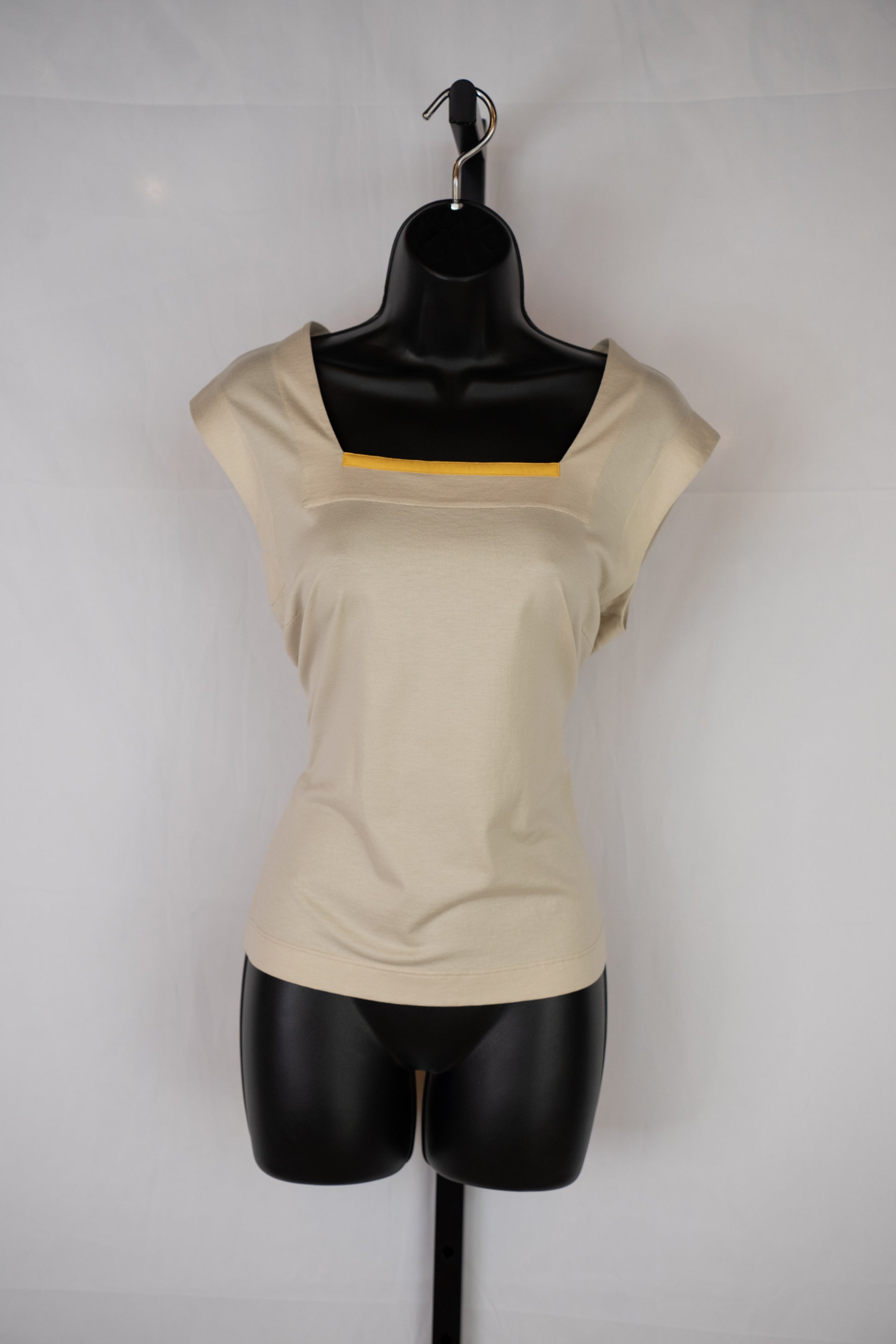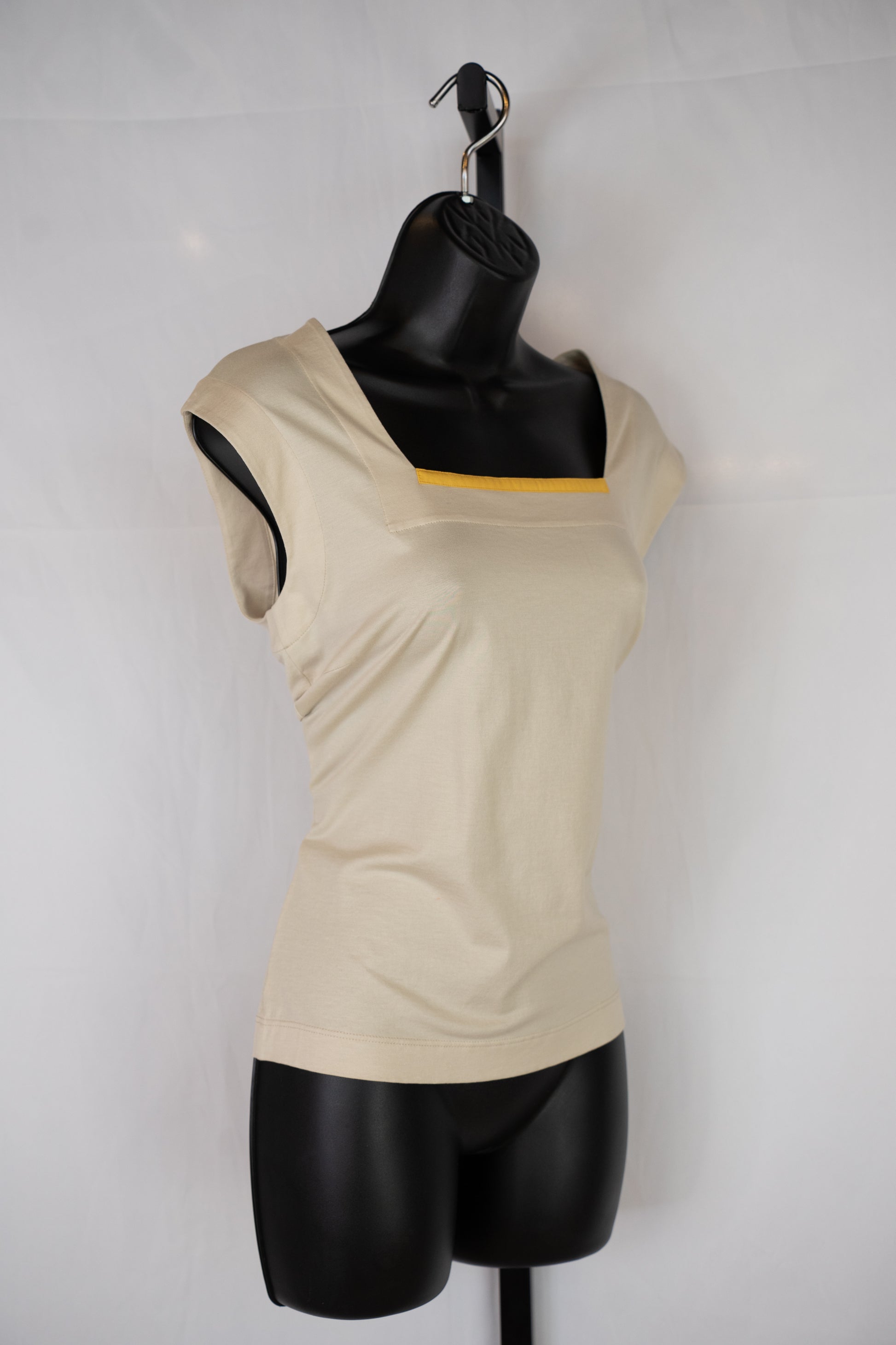 Akris Punto Square Neck Tan w/Yellow Stripe Top