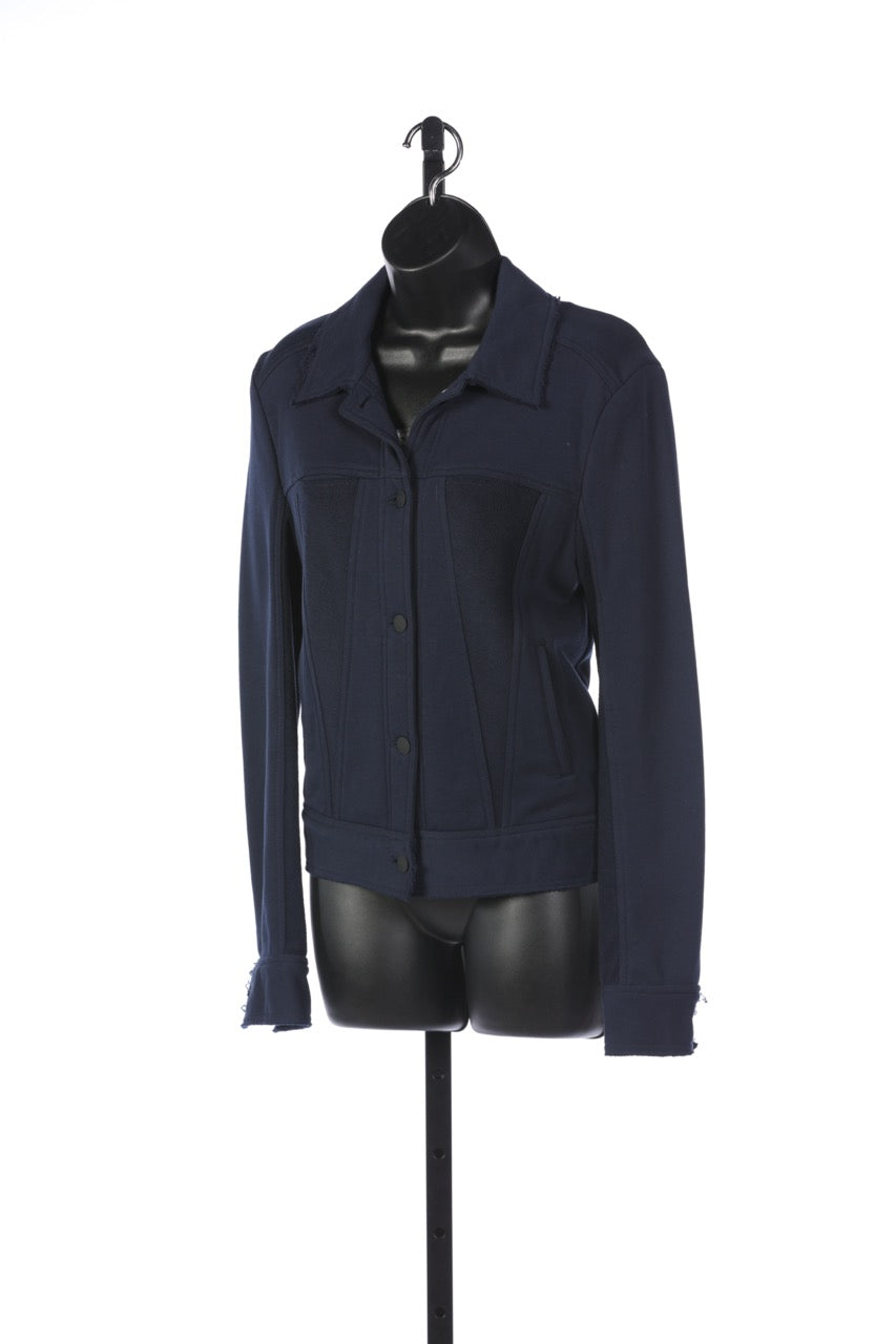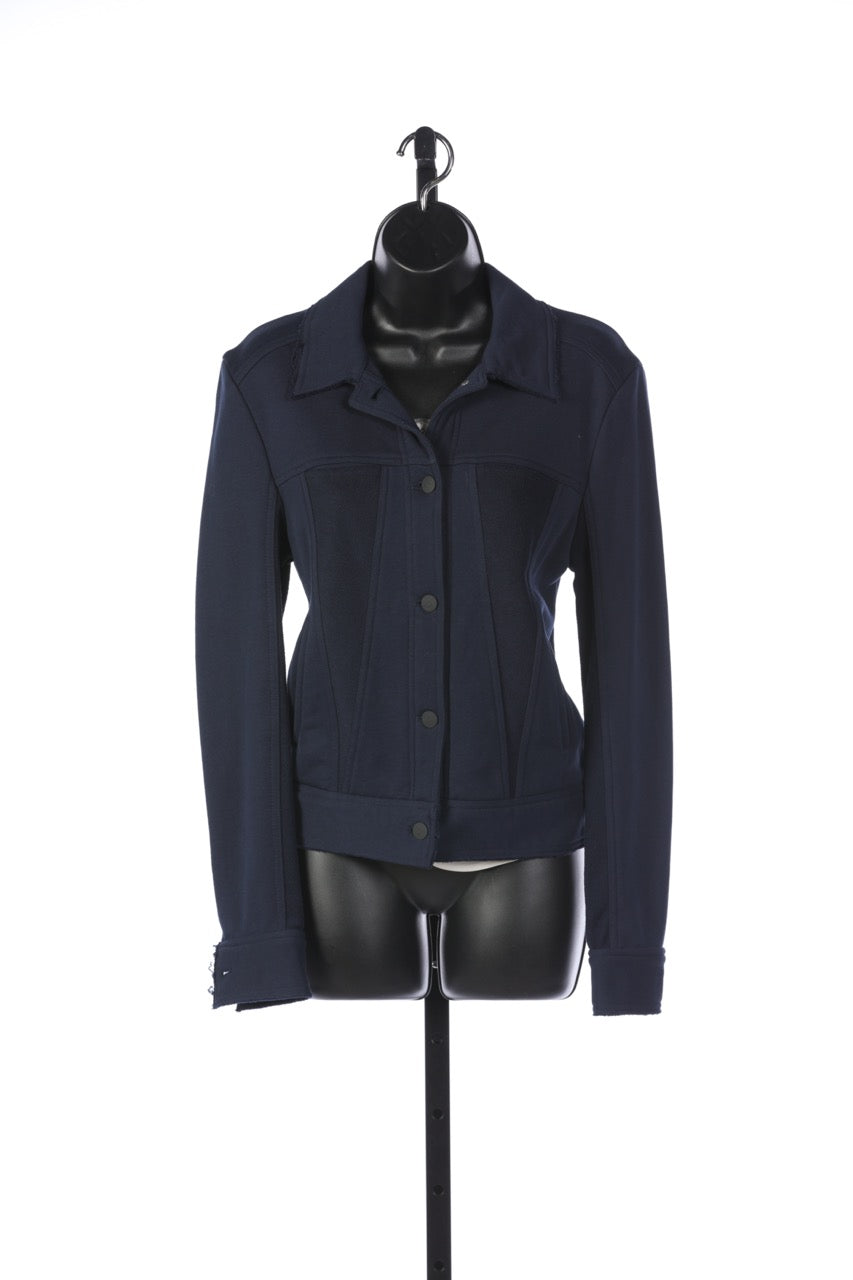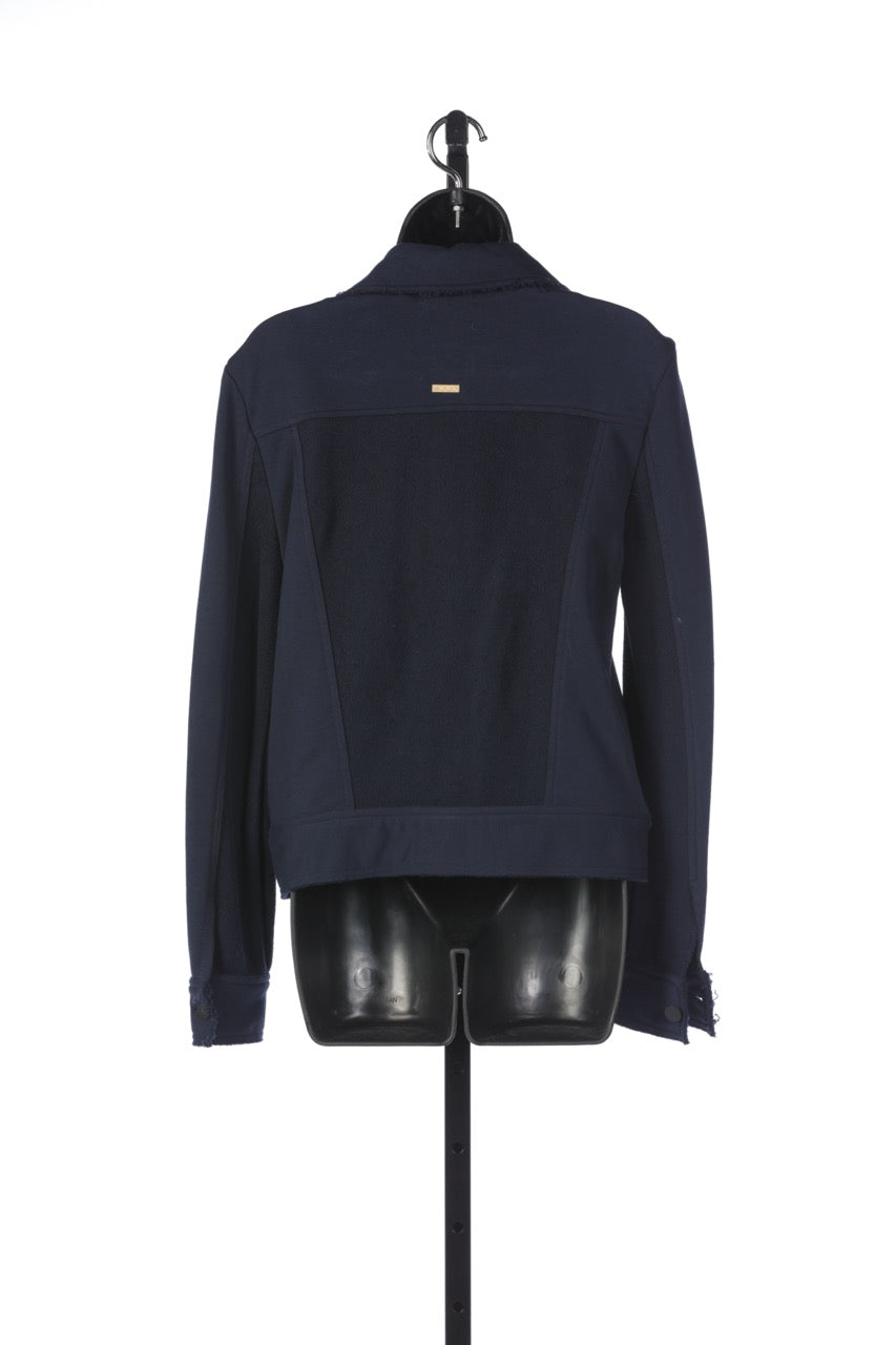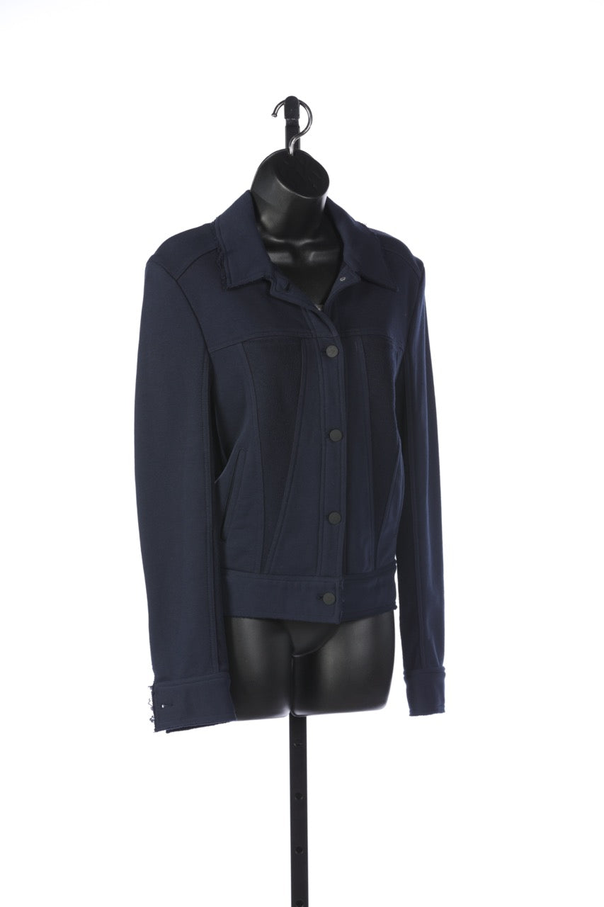 Alaia Navy Collared Button-Up Jacket with Raw Trim