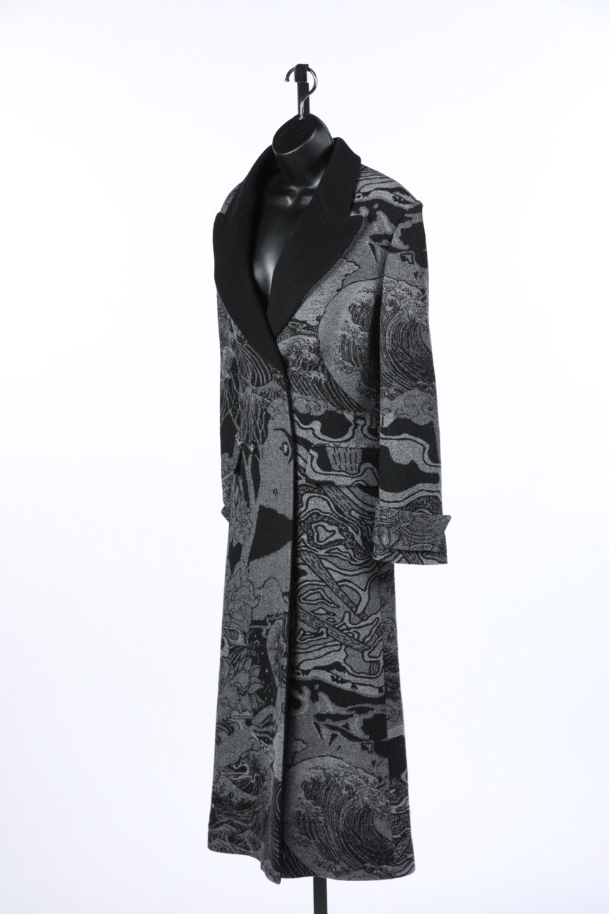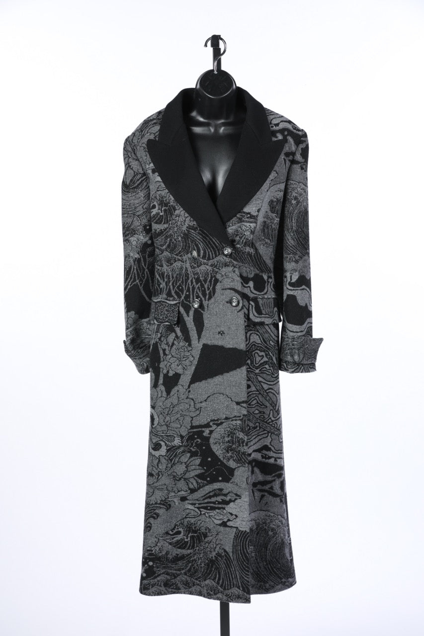 ALBERTA FERRETTI Gray/Black Waves Floral Print Peacoat