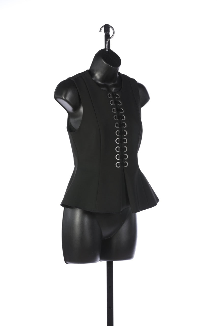 Alexander Wang Black Lace Up Sleeveless Peplum Top with Silver Hardware