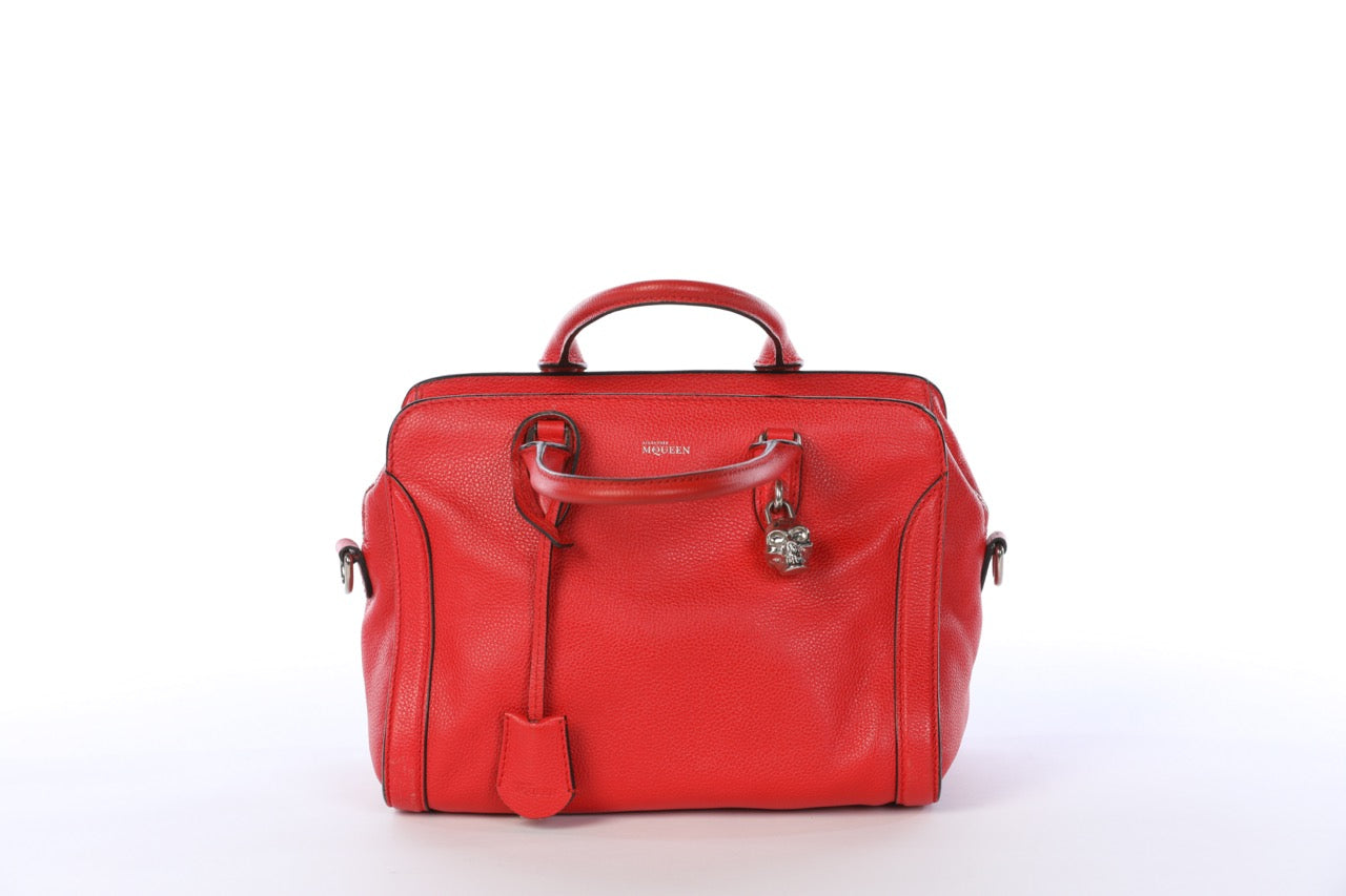 Alexander McQueen Leather Red Medium Padlock Satchel Bag with Skull Lock & Keys