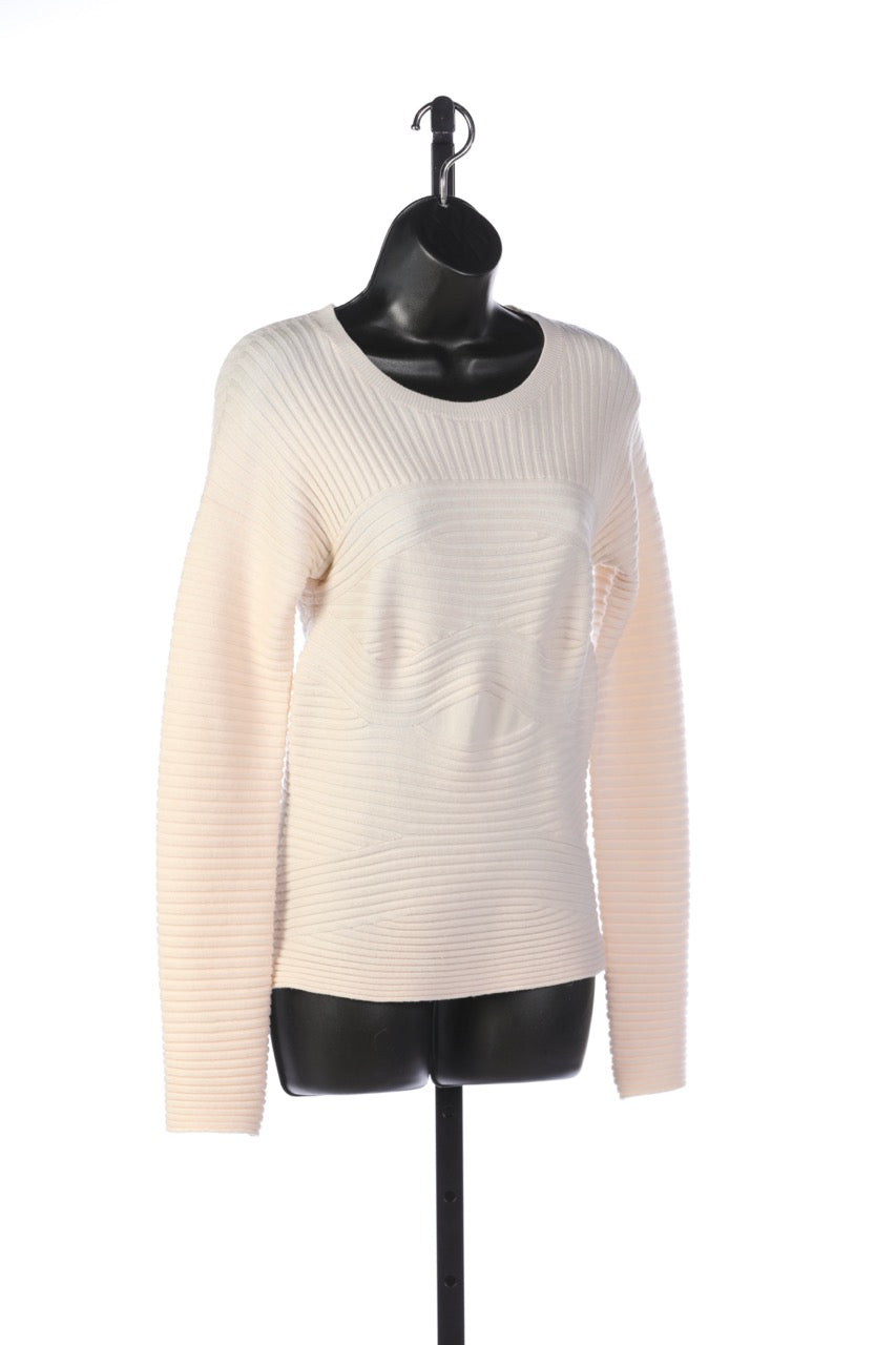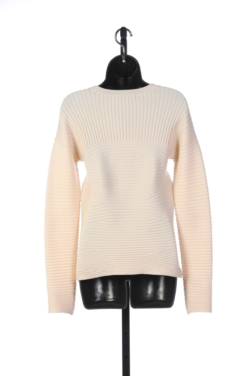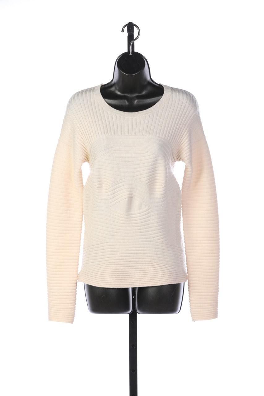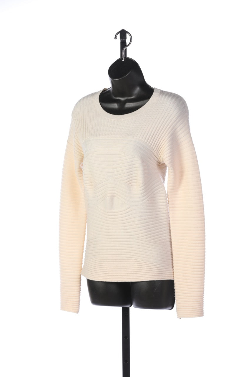 Alexander Wang Cream Wool Long Sleeve Crew-Neck Rib Pattern Sweater