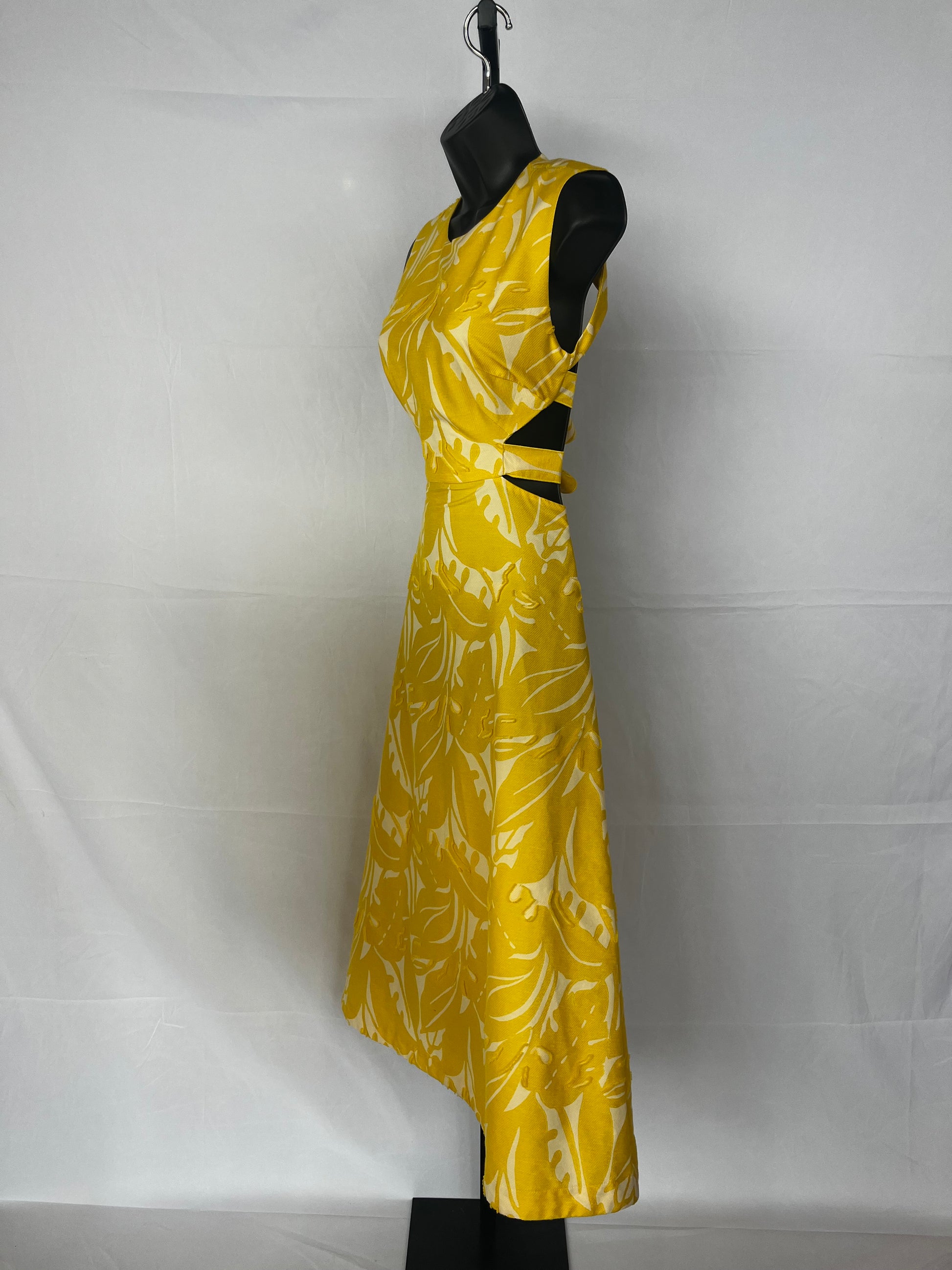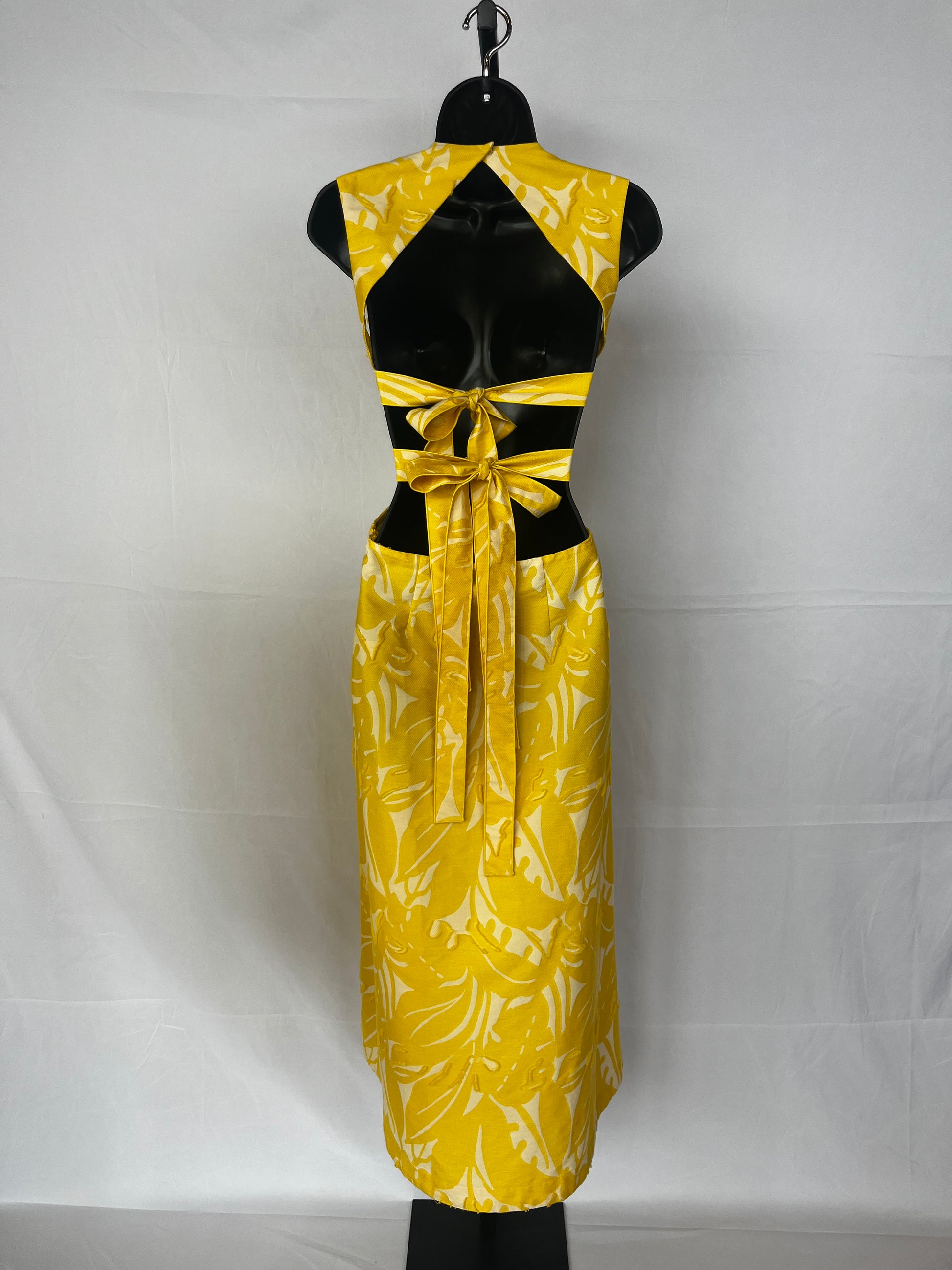 Alexis Yellow & White Floral Strappy Halter Open Tie Back Maxi Dress