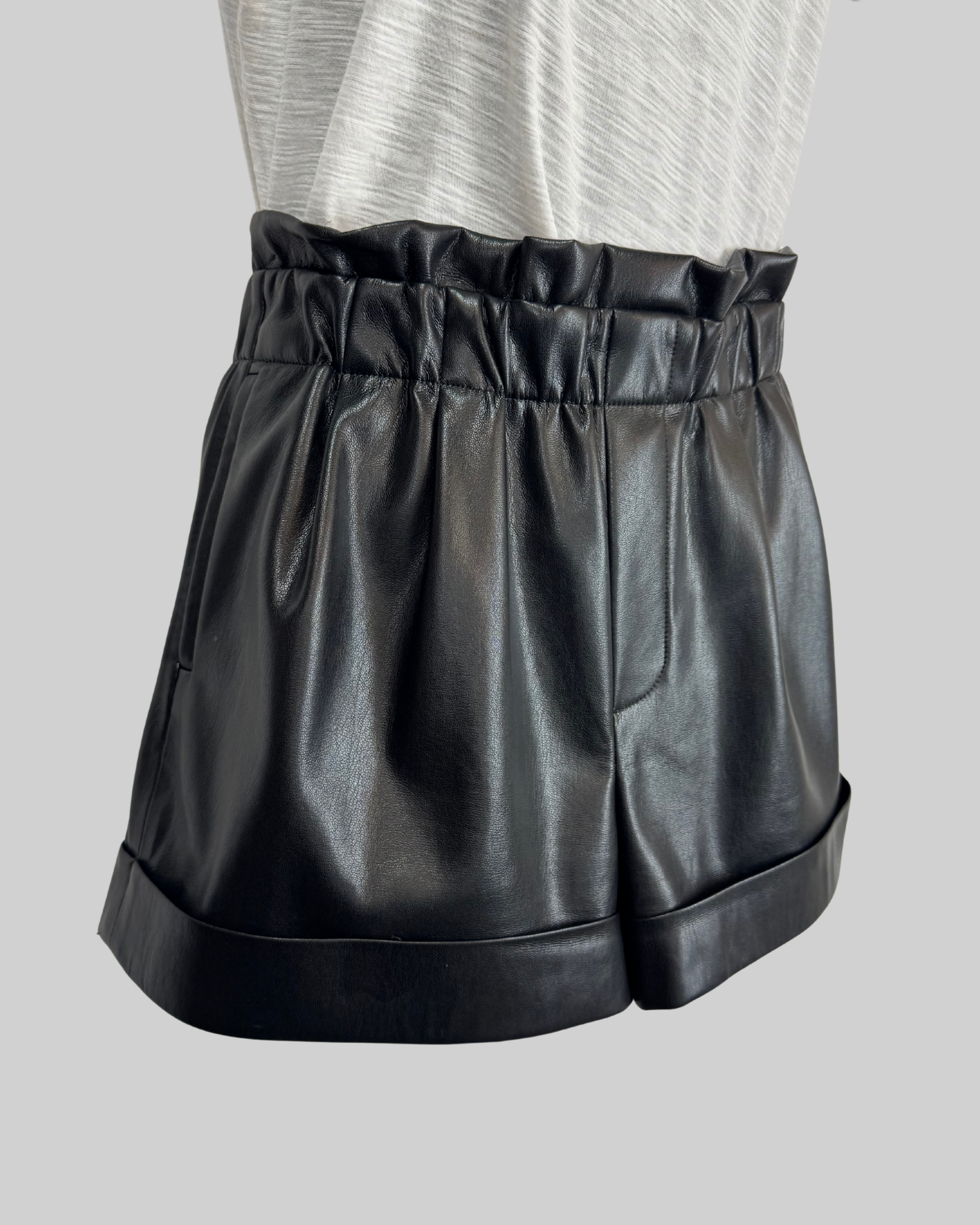 Alice + Olivia Black Faux Leather Cinched Waist Shorts
