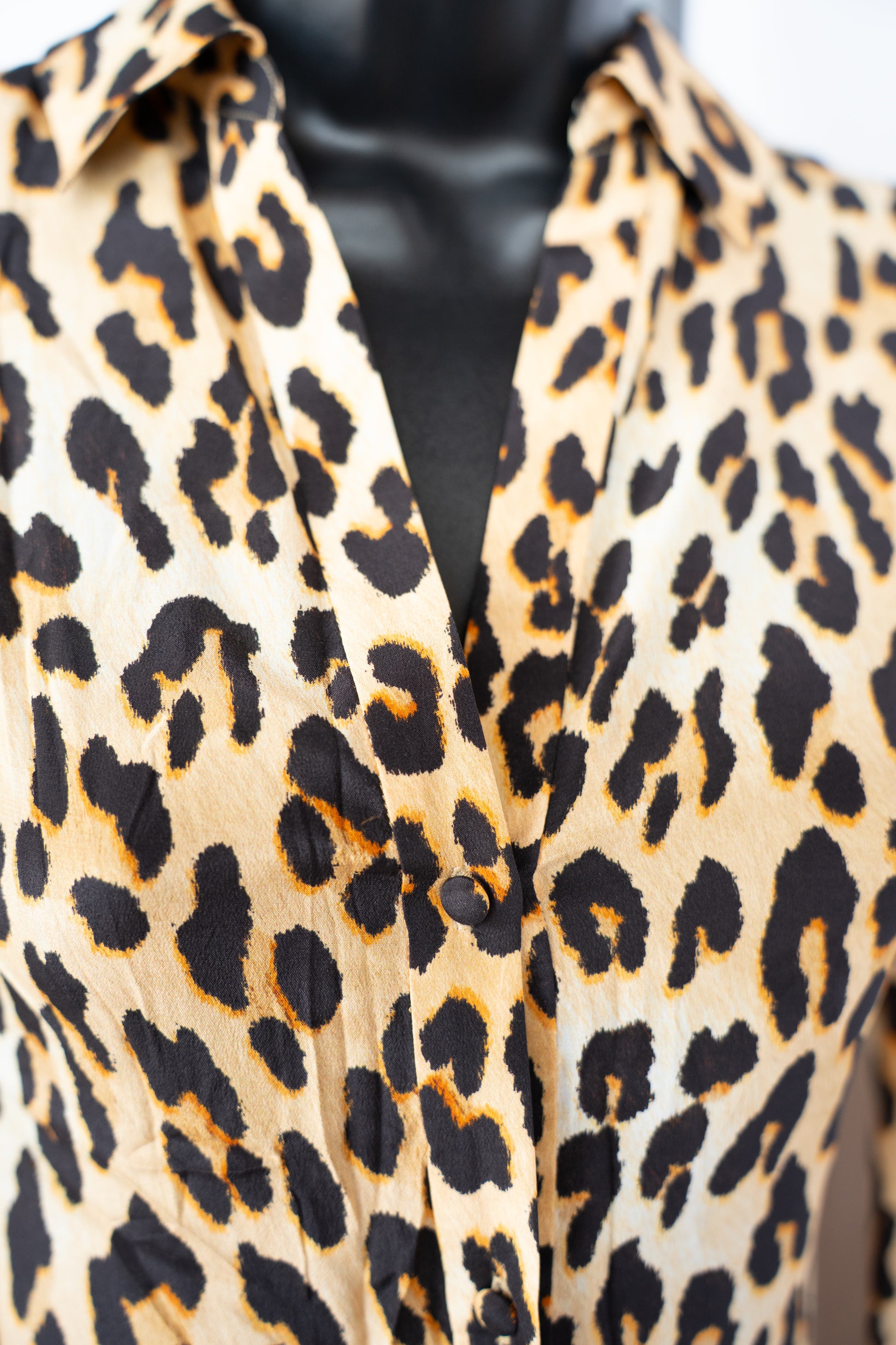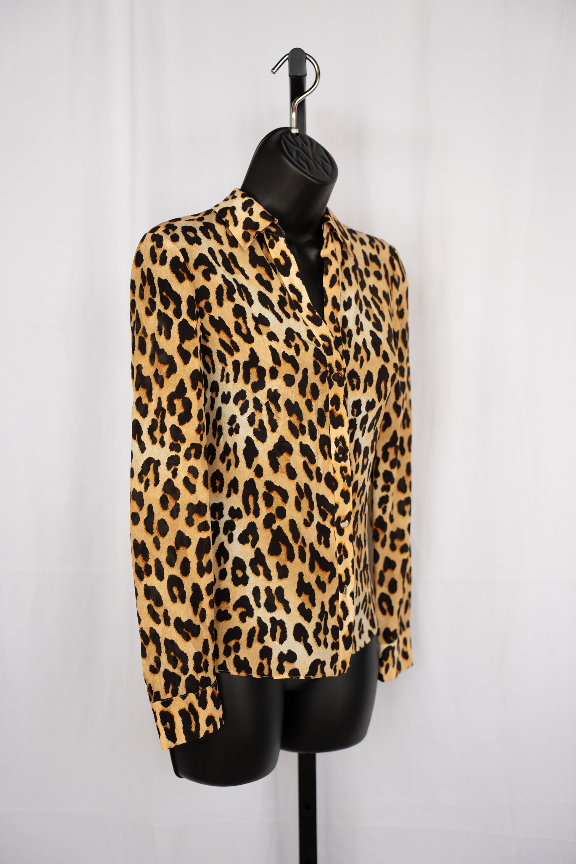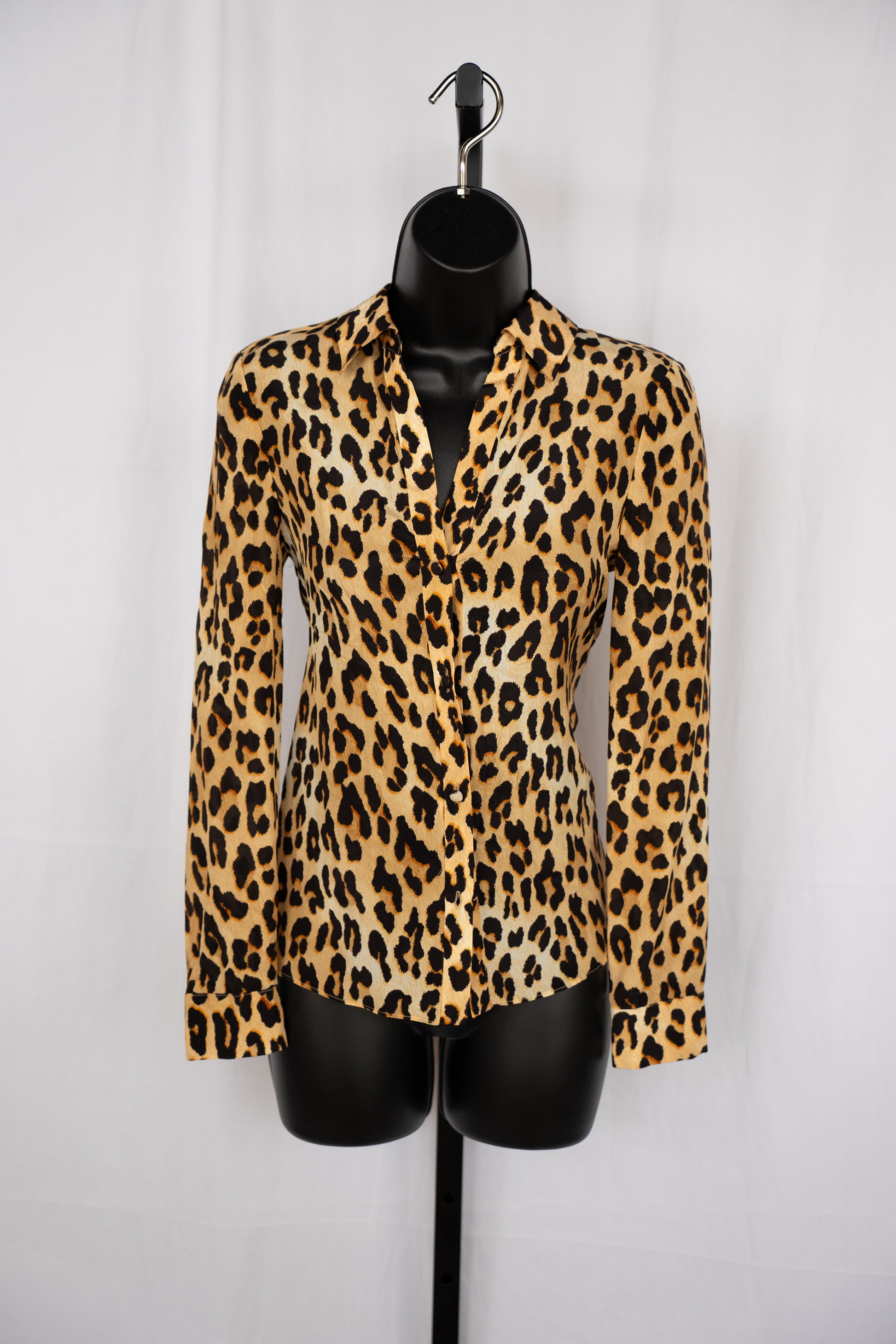 Alice + Olivia Brown Black Leopard Print Long Sleeve Button Long Sleeve Blouse