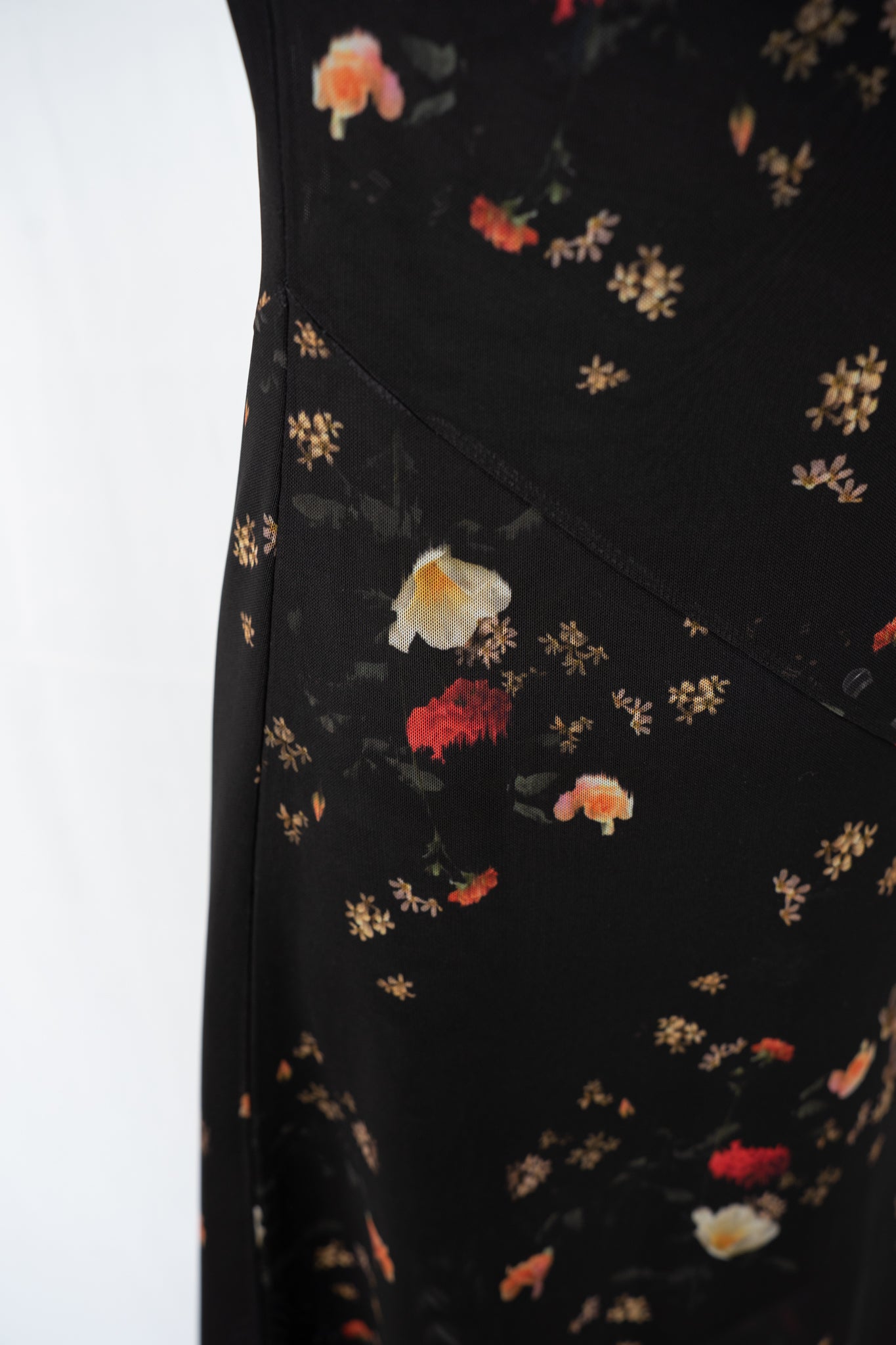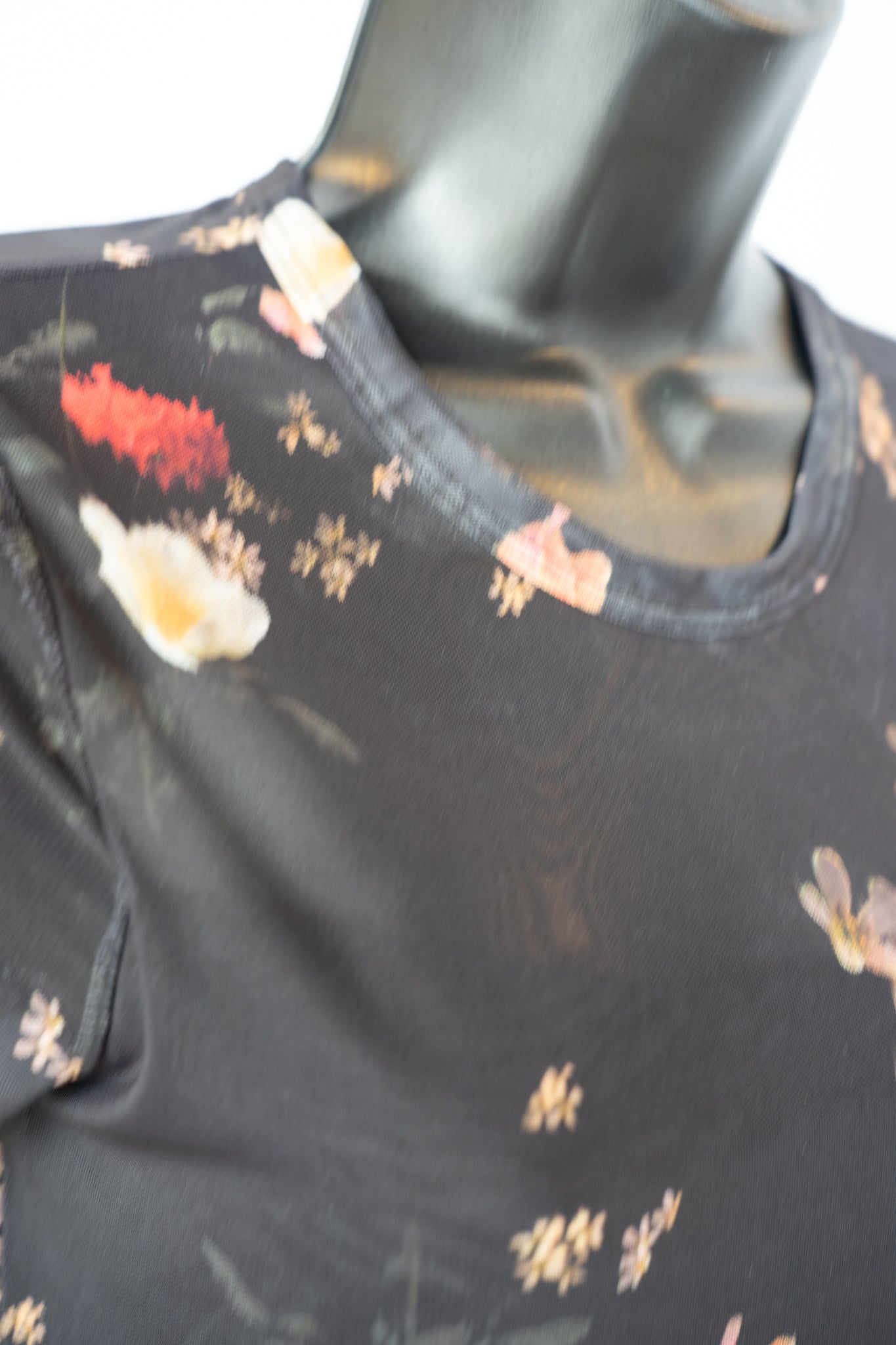 All Saints Black Floral Mesh Short Sleeve Midi Dress w Slip