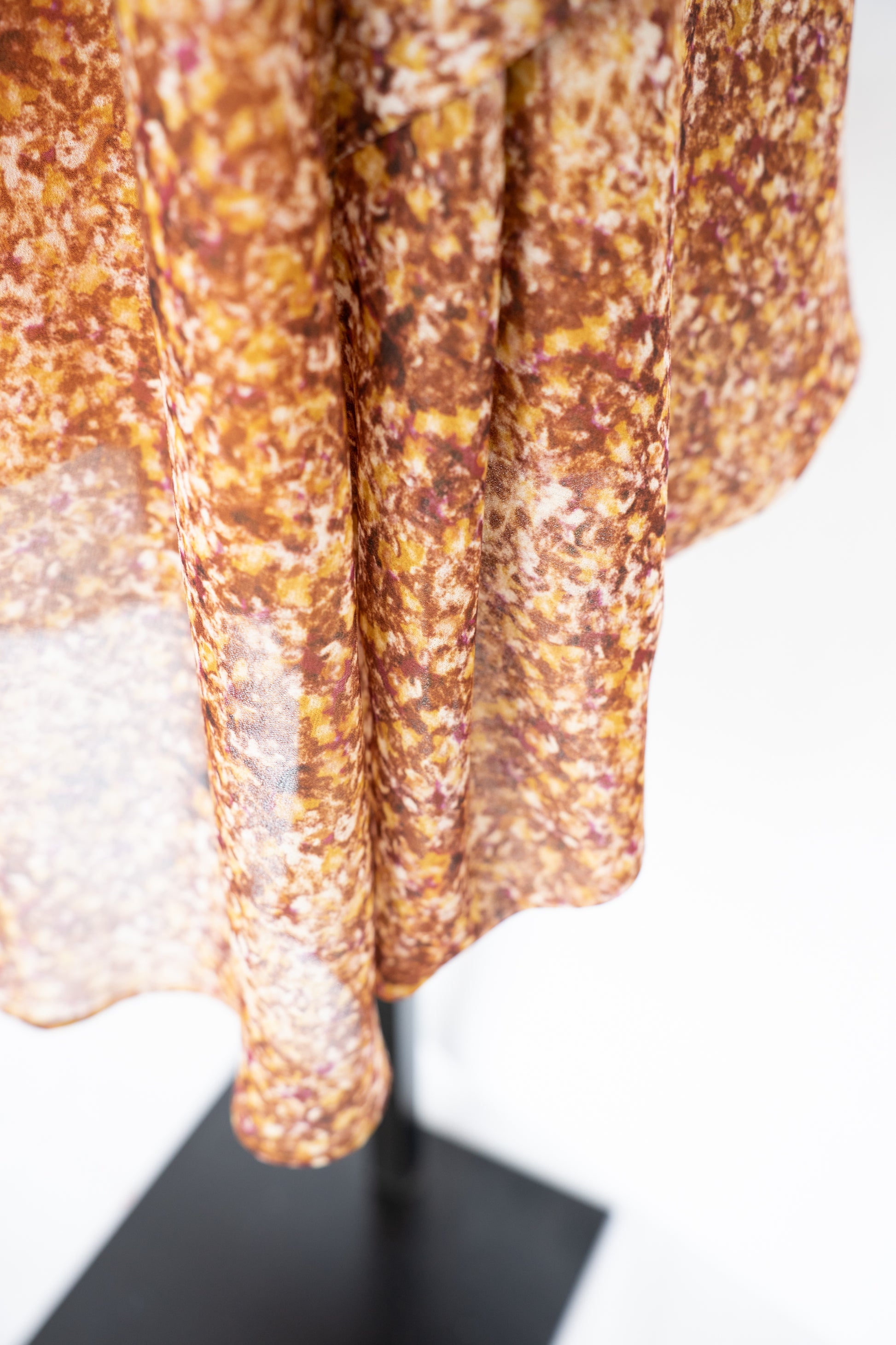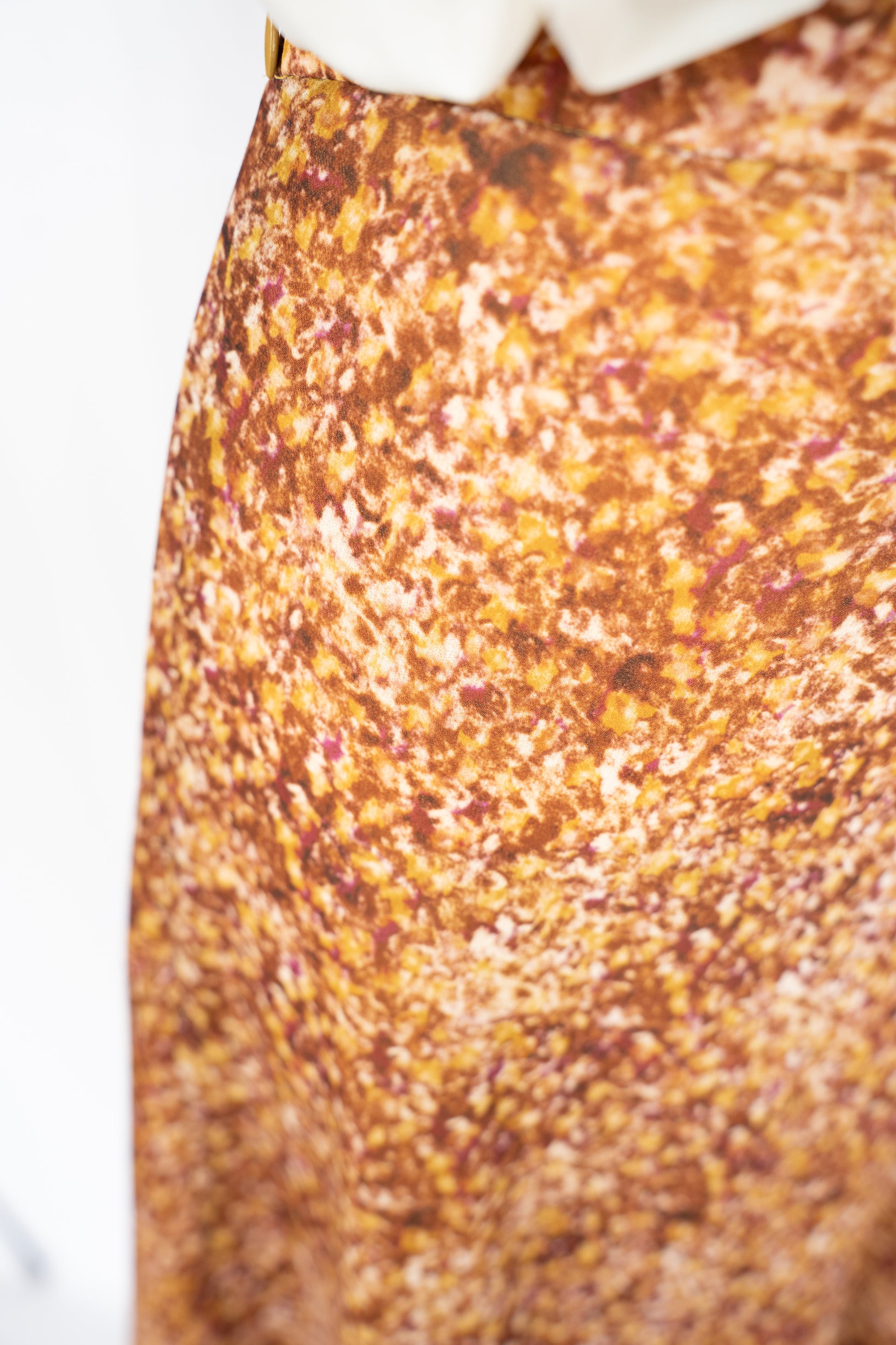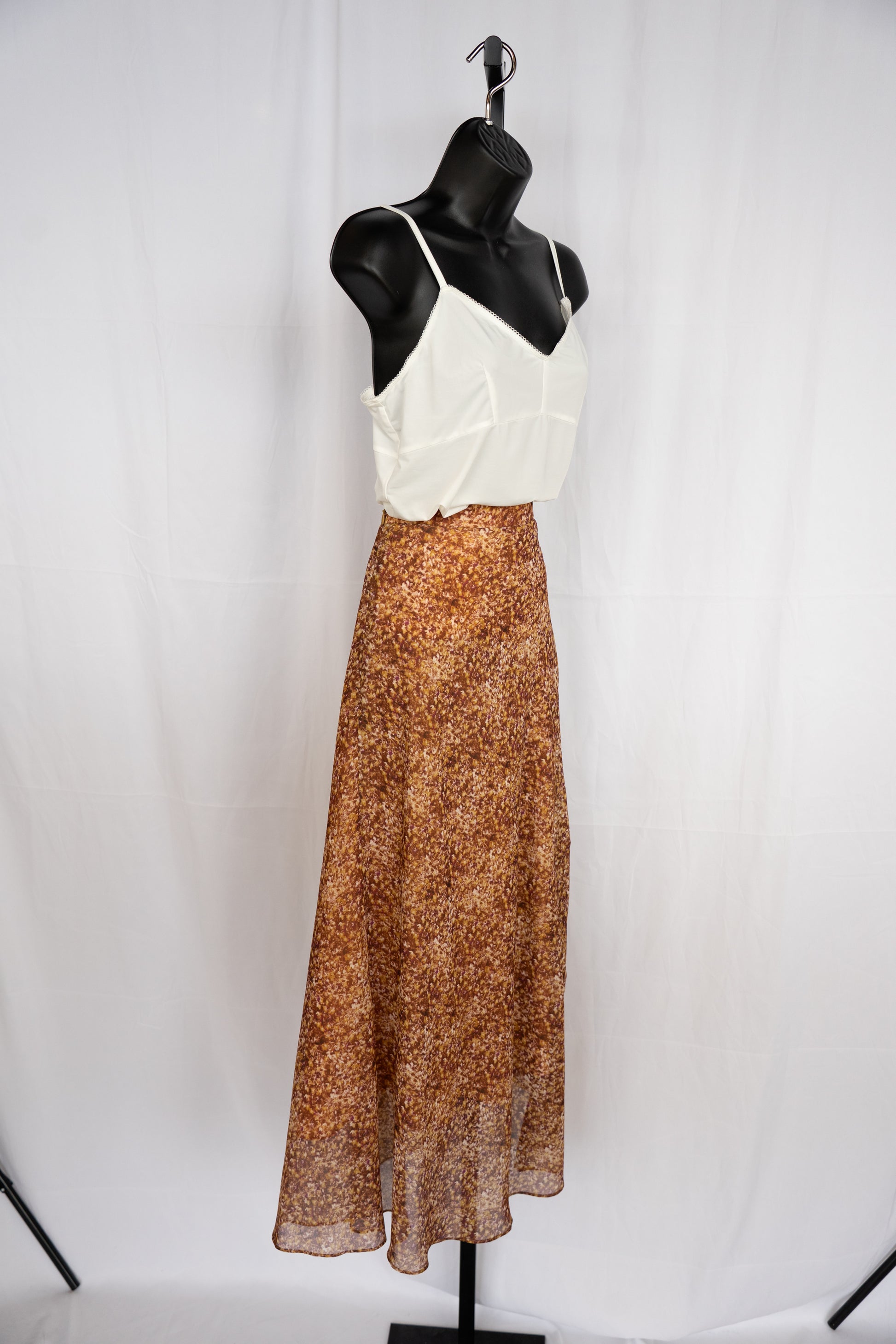 All Saints Brown & Yellow Print Ruffle Hem Midi Skirt