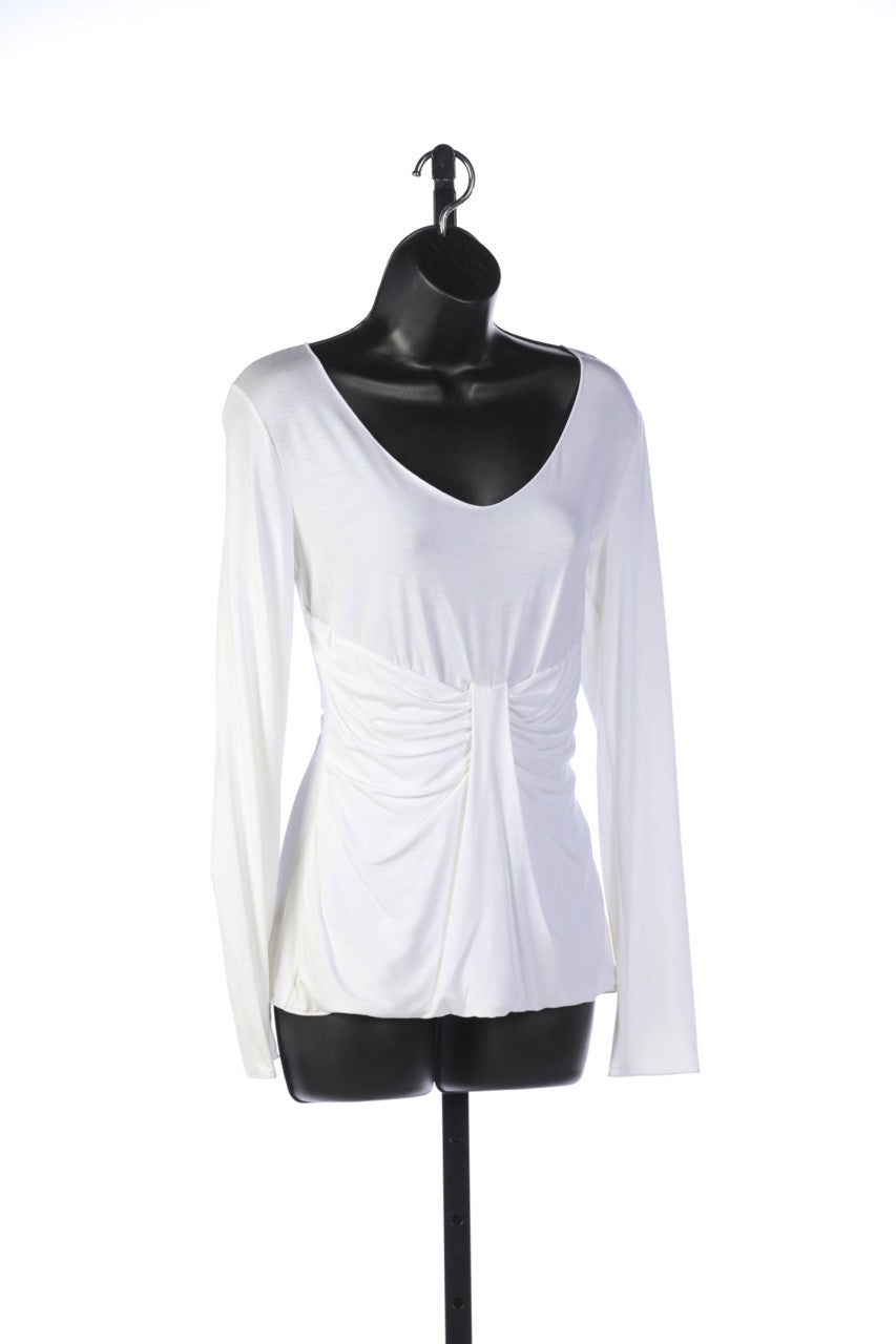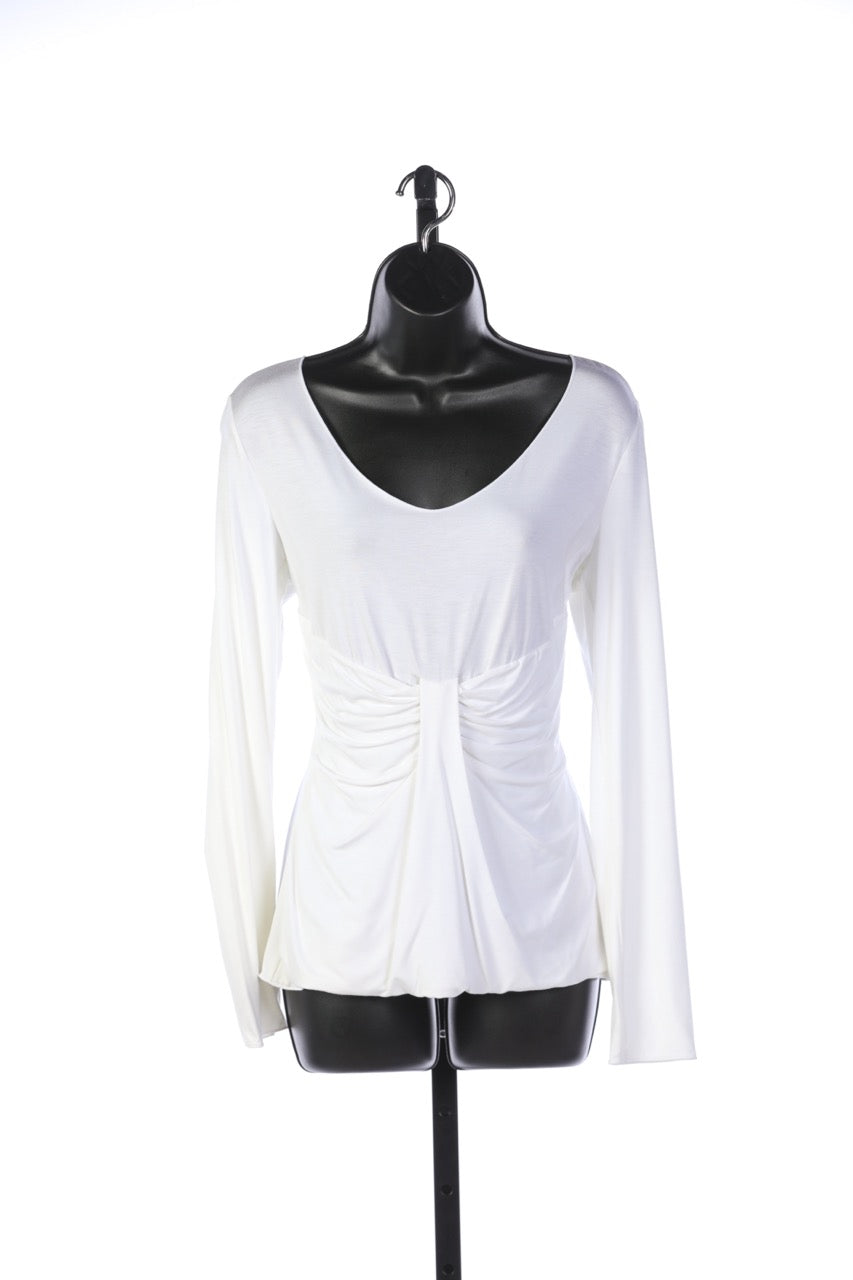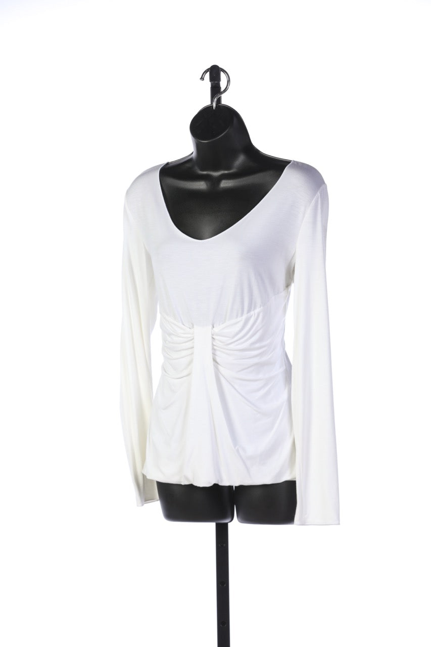 Armani Collezioni White Long Sleeve Shirt with Symmetrical Front Ruching NWT