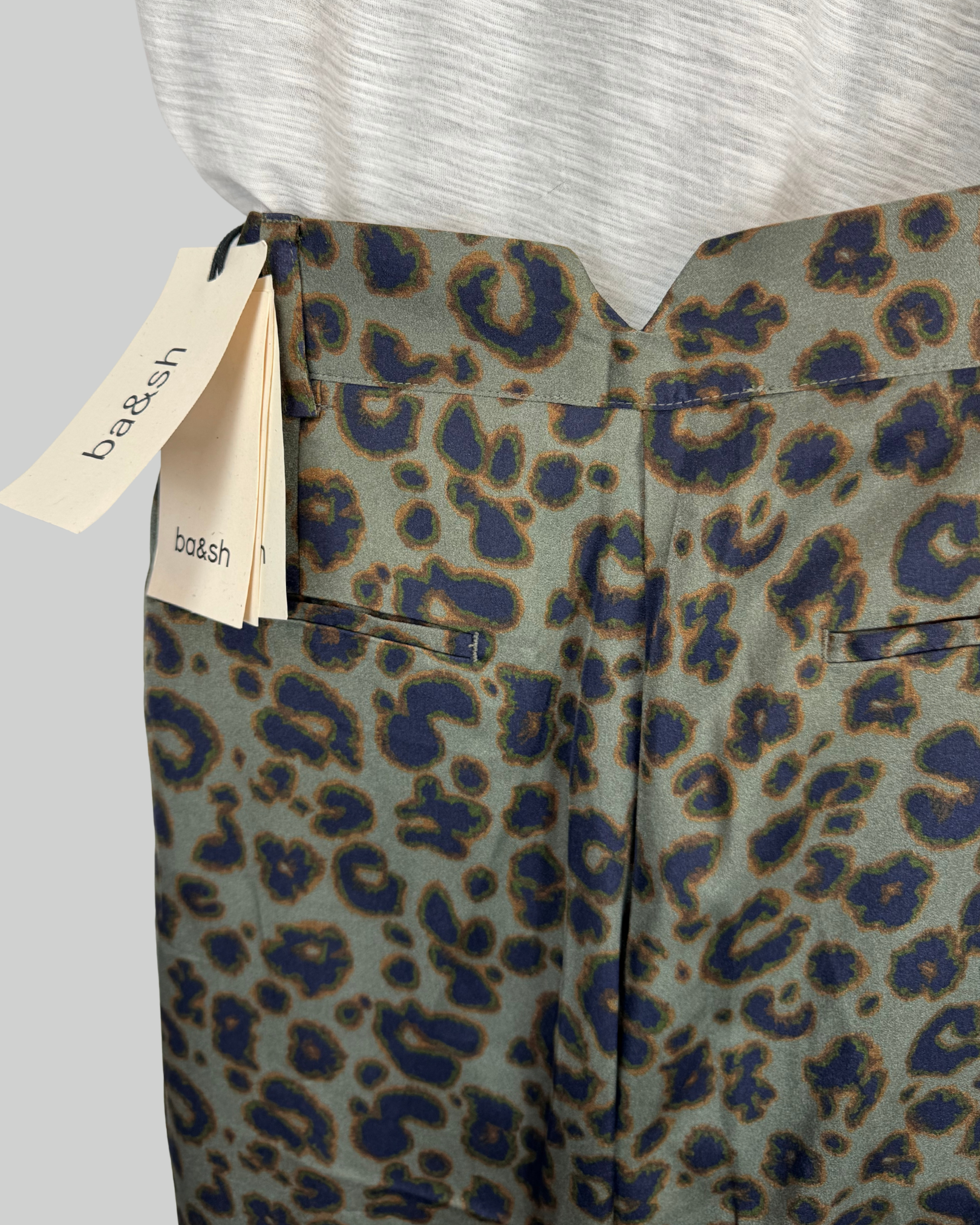 Ba&sh Green/Grey Leopard Print Wide Leg Pants