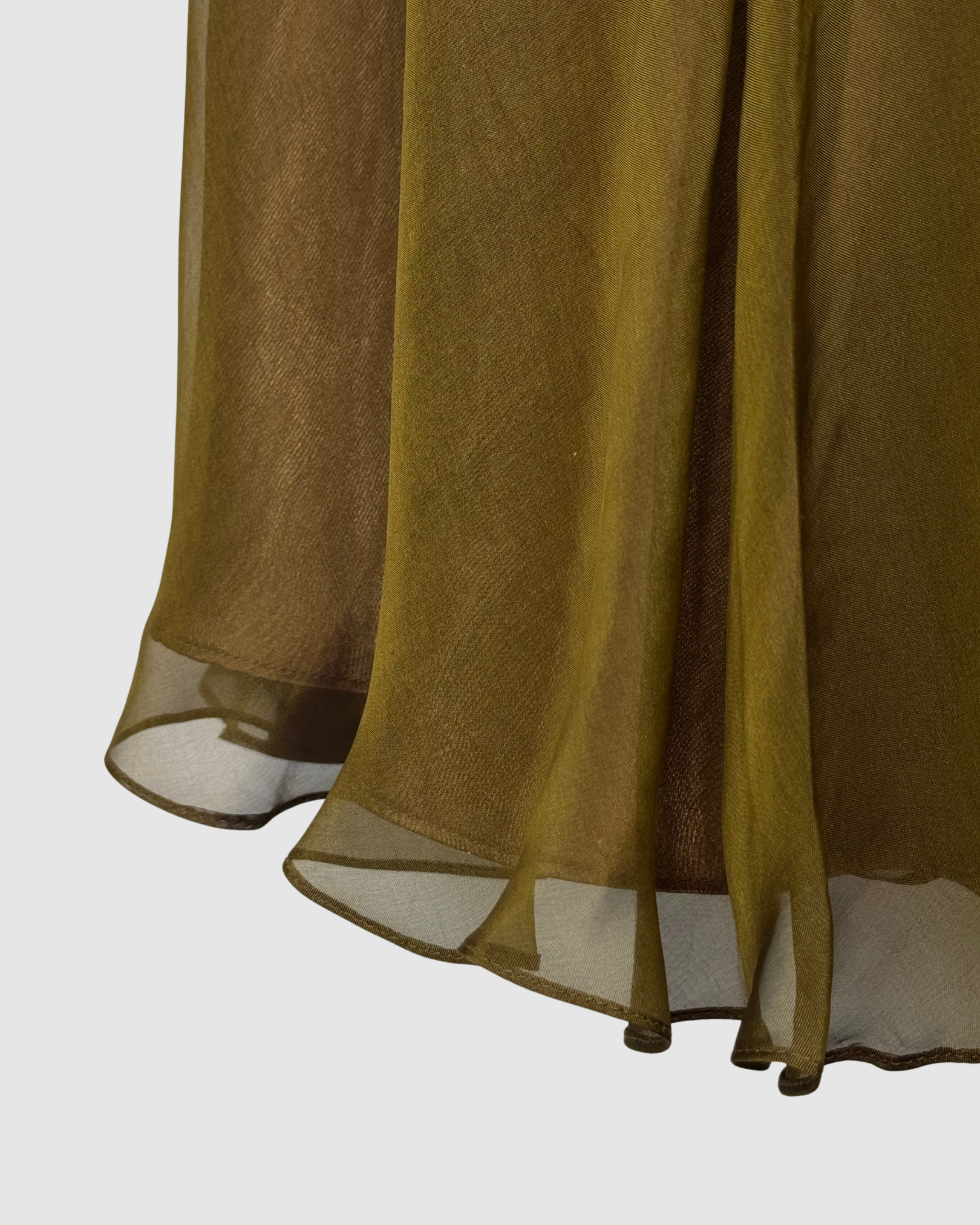 Badgley Mischka Silk Bronze Sleeveless Mini Dress w/ Rhinestone Straps