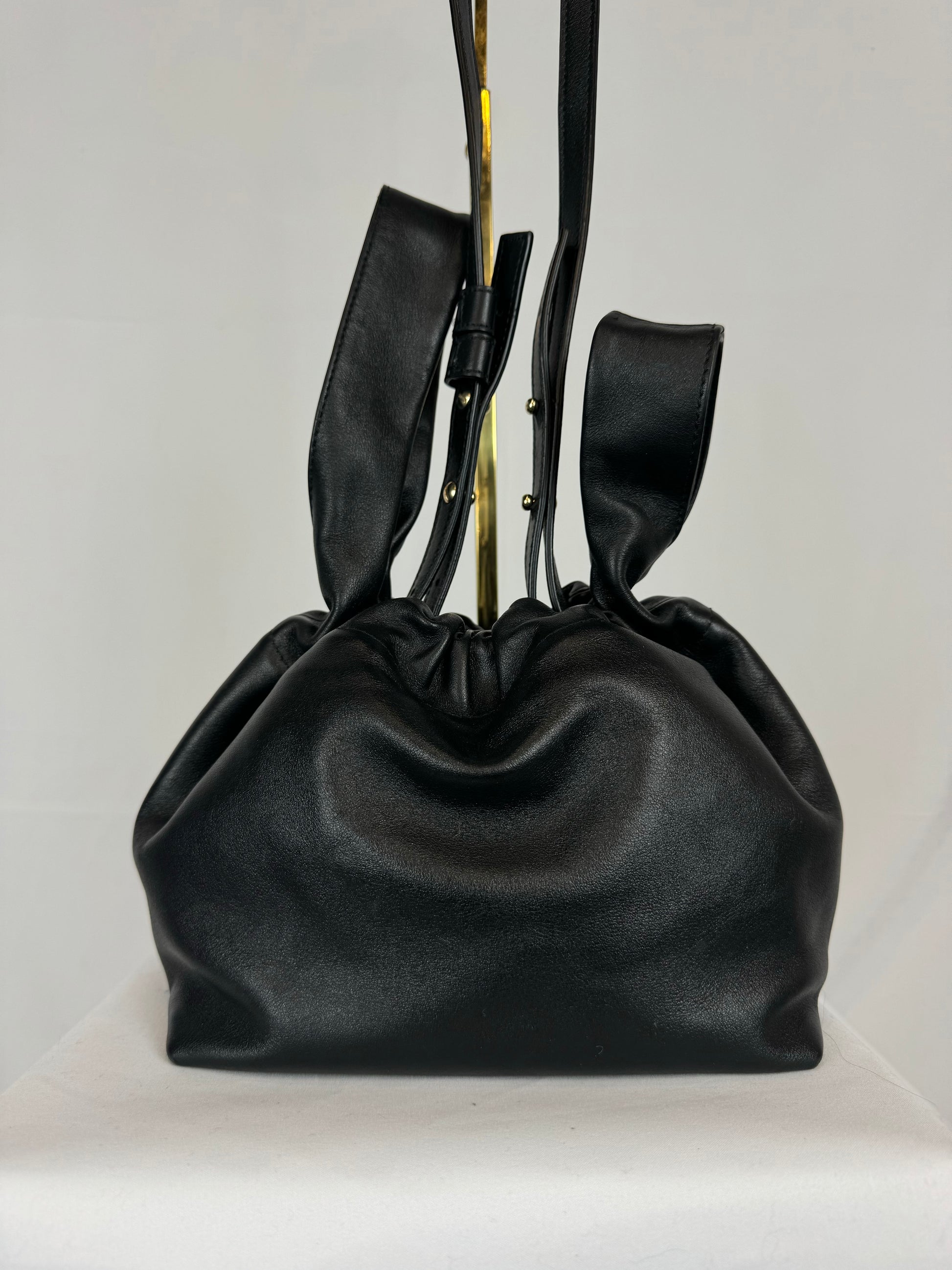 Bally Black Leather Quilted Drawstring Crossbody Bag