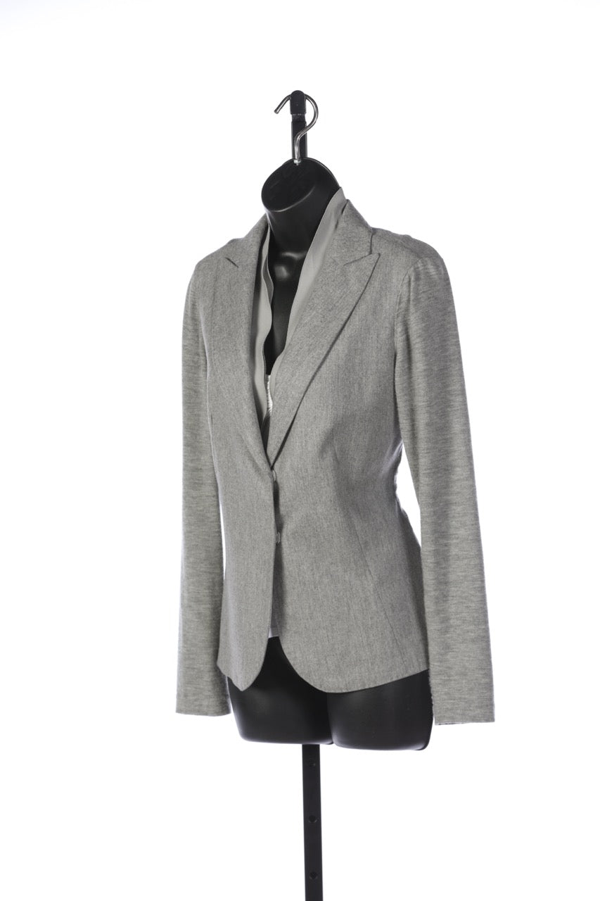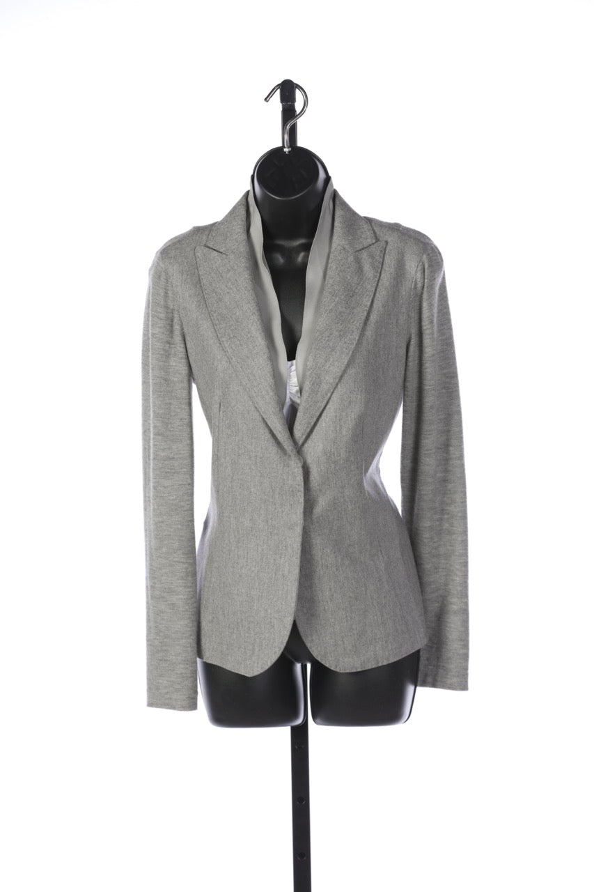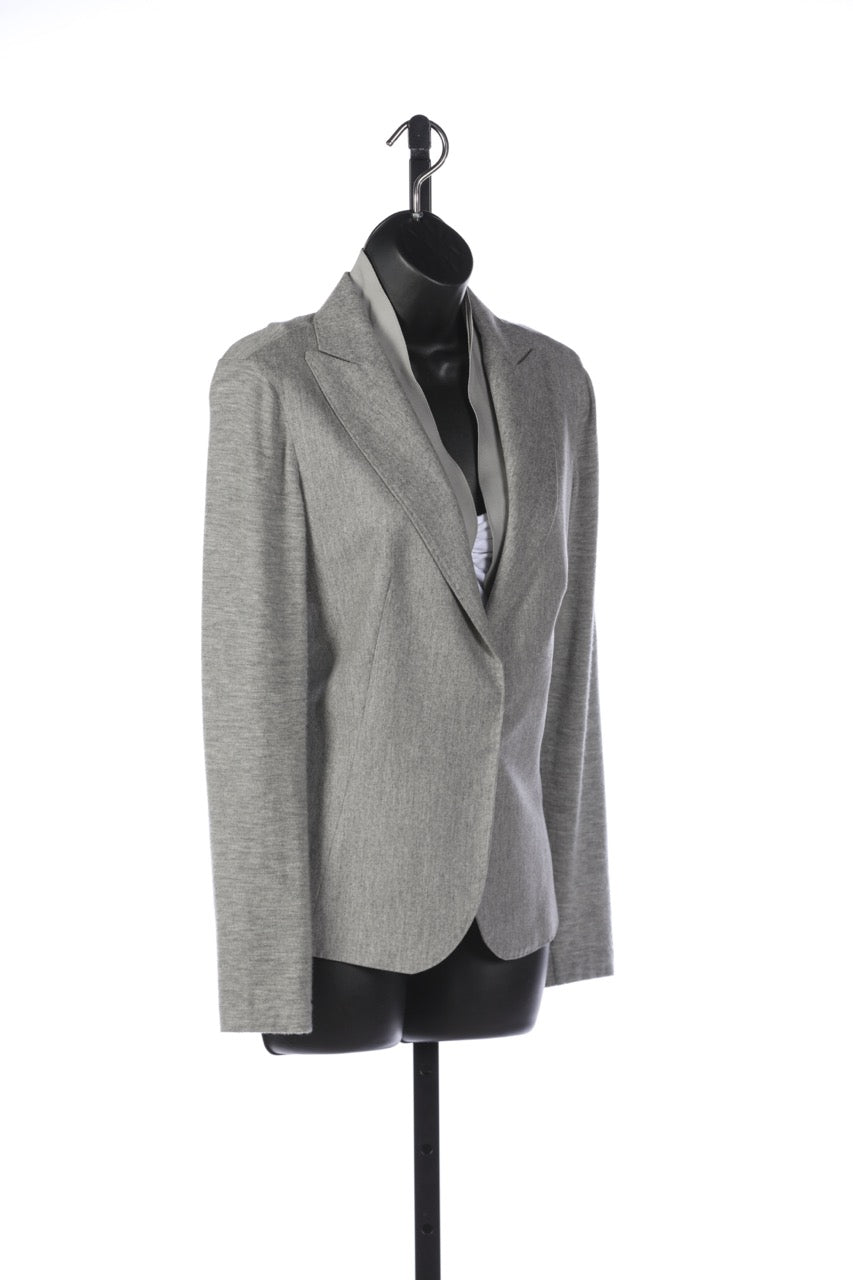 Brunello Cucinelli Cashmere Grey Lightweight Jacket with Silk Collar Detail