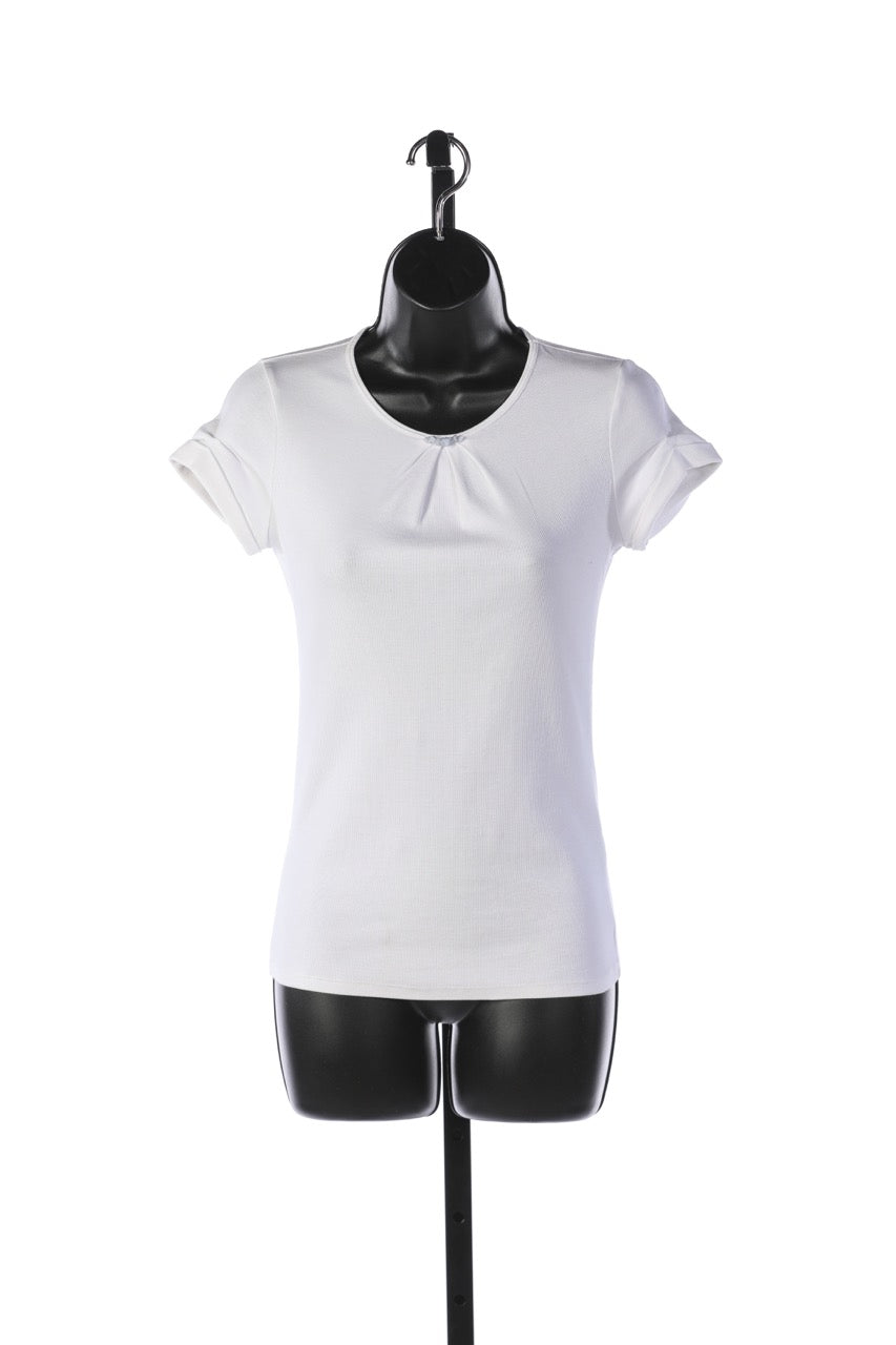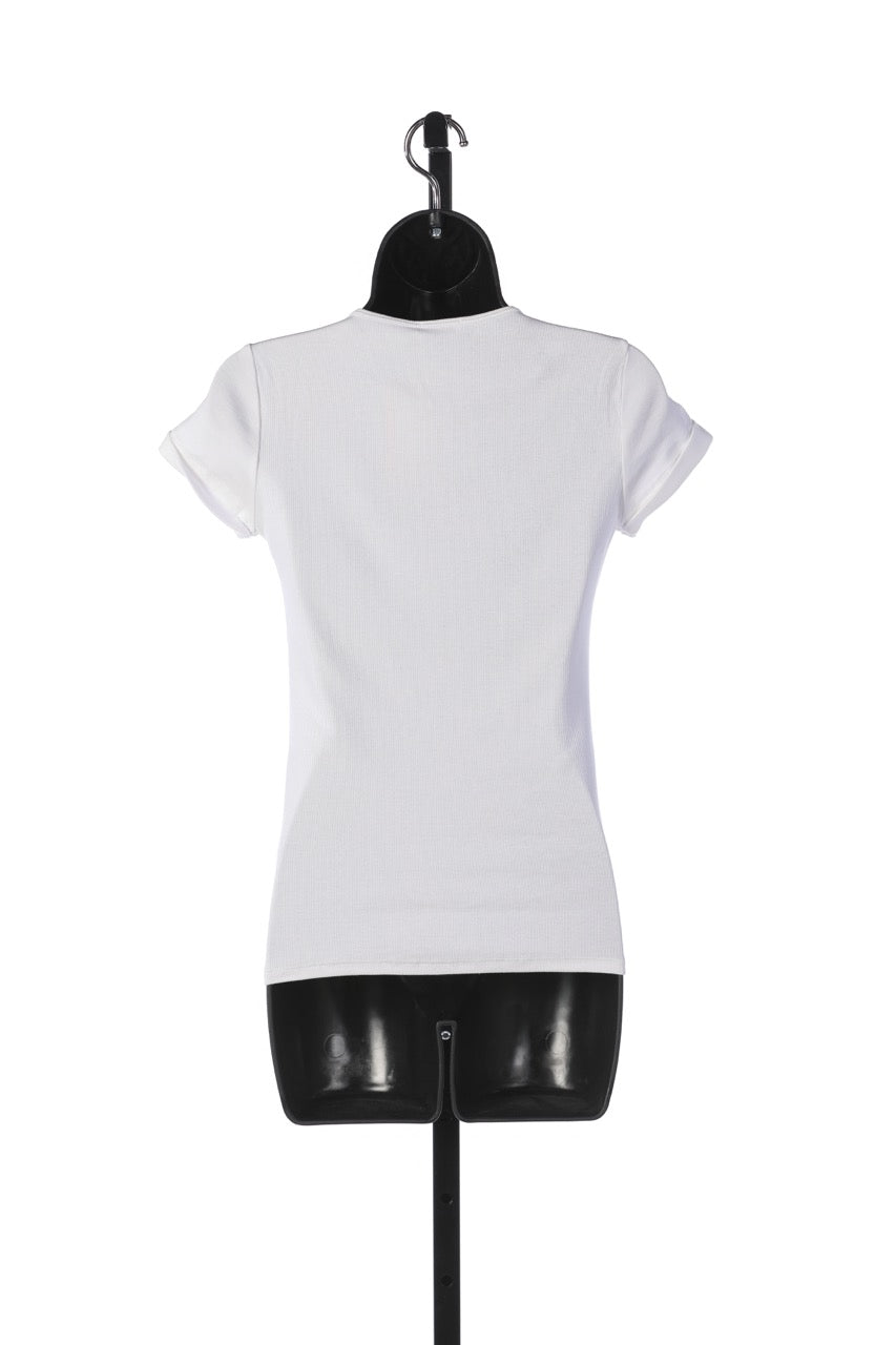 Brunello Cucinelli White Crew-Neck Short-Sleeve Tee w/ Periwinkle Stones