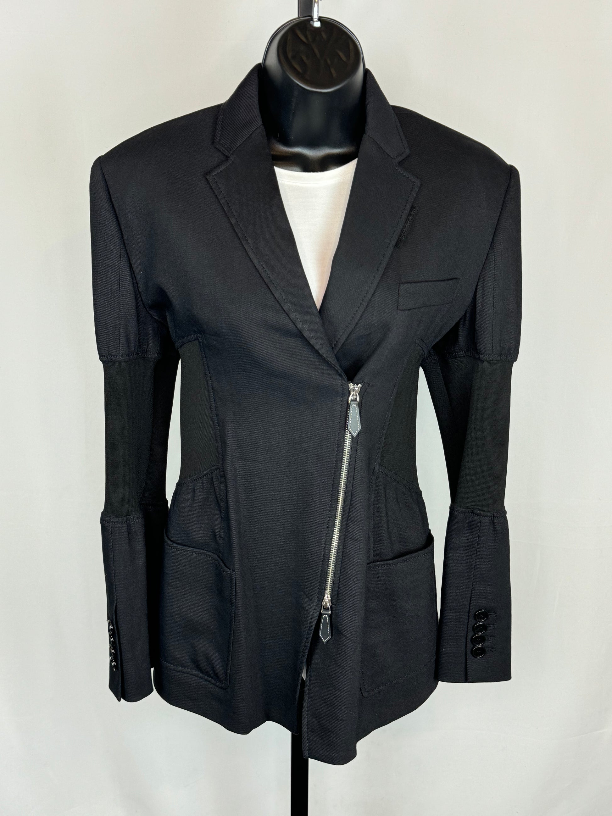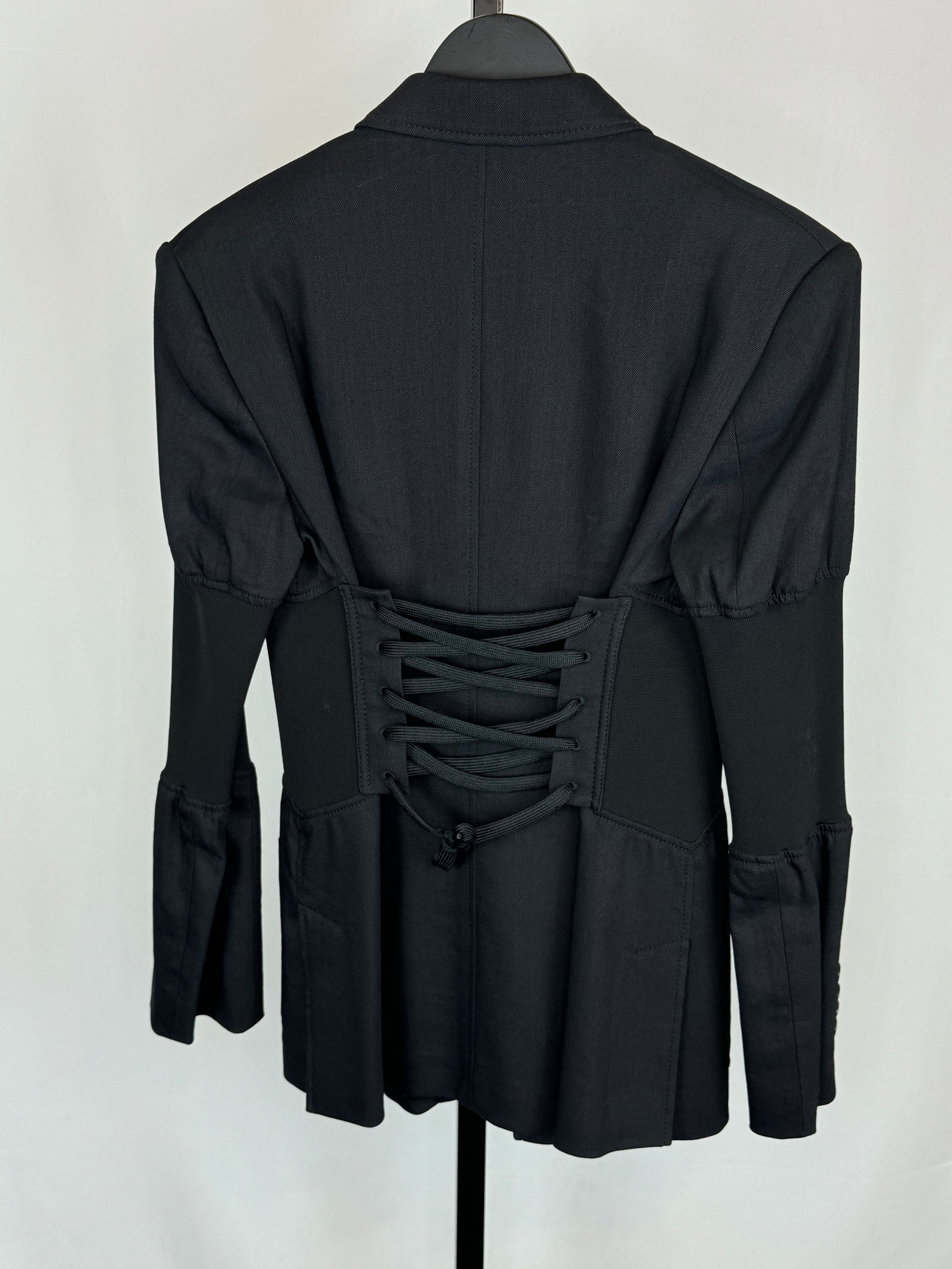 Burberry Black Zip Up Spandex Part Blazer-Like Jacket w Corset Lace Back Detail
