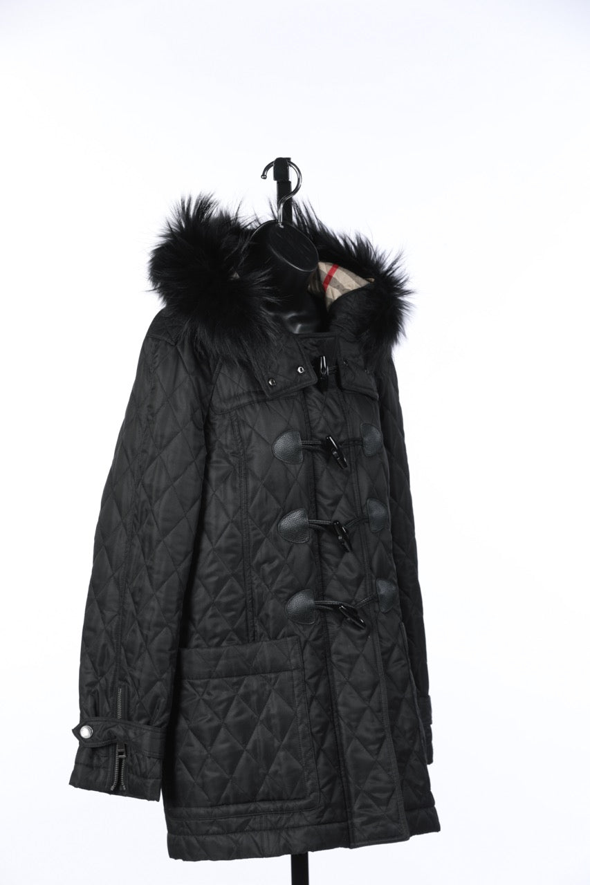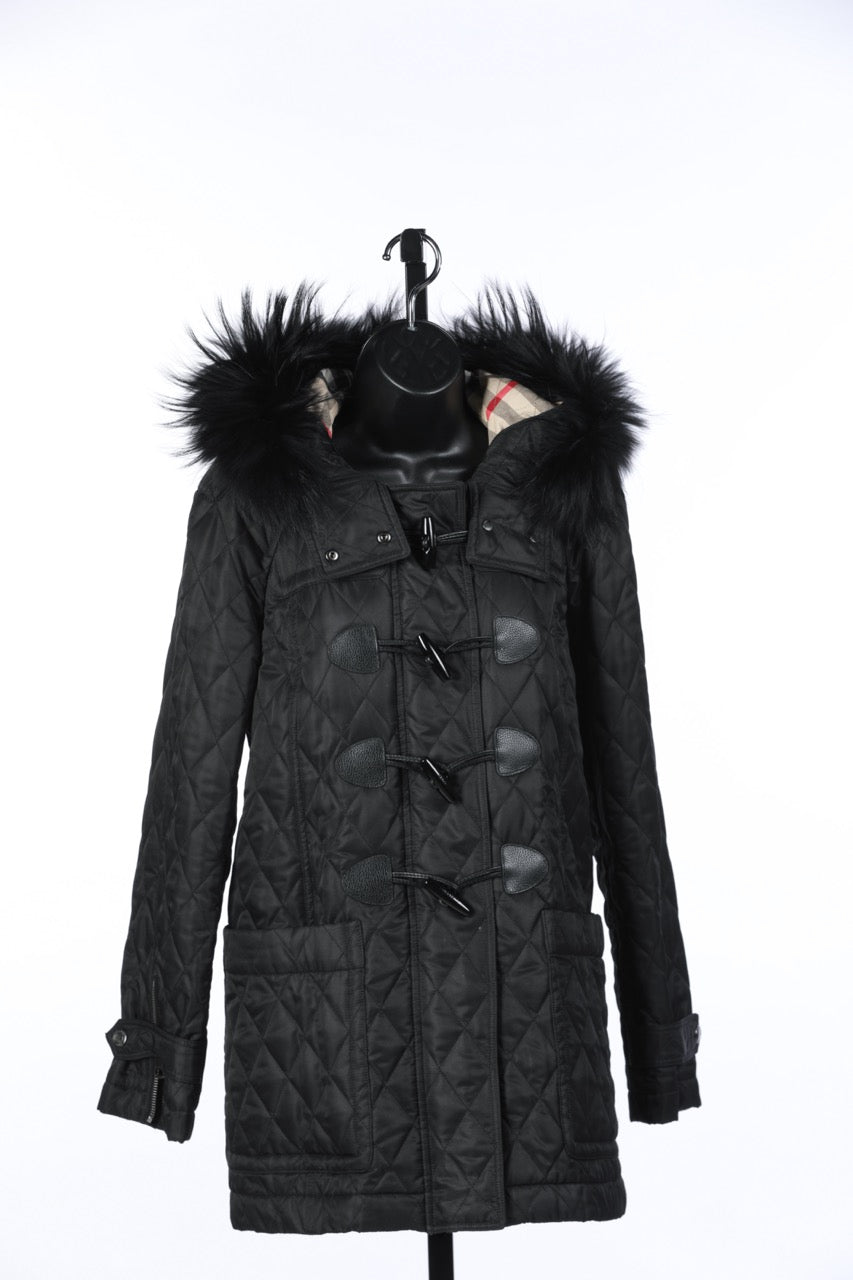 Burberry Brit Black Quilted Coat w/ Fur Lined Hood