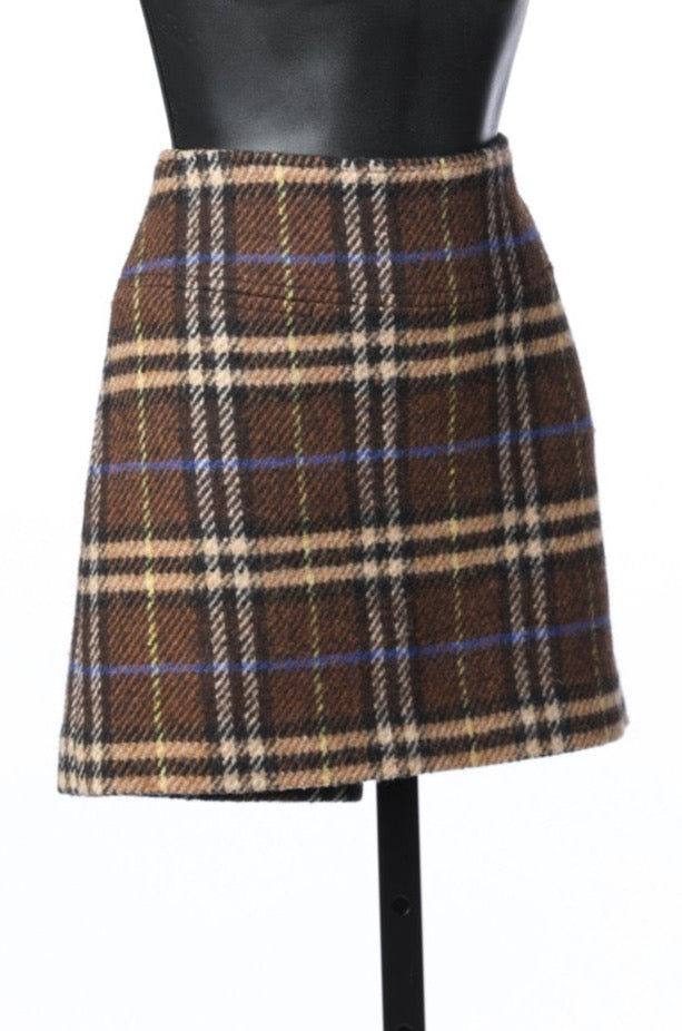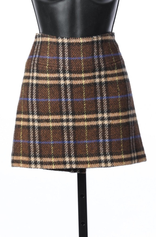 Burberry Brown & Blue Wool Plaid Mini Skirt