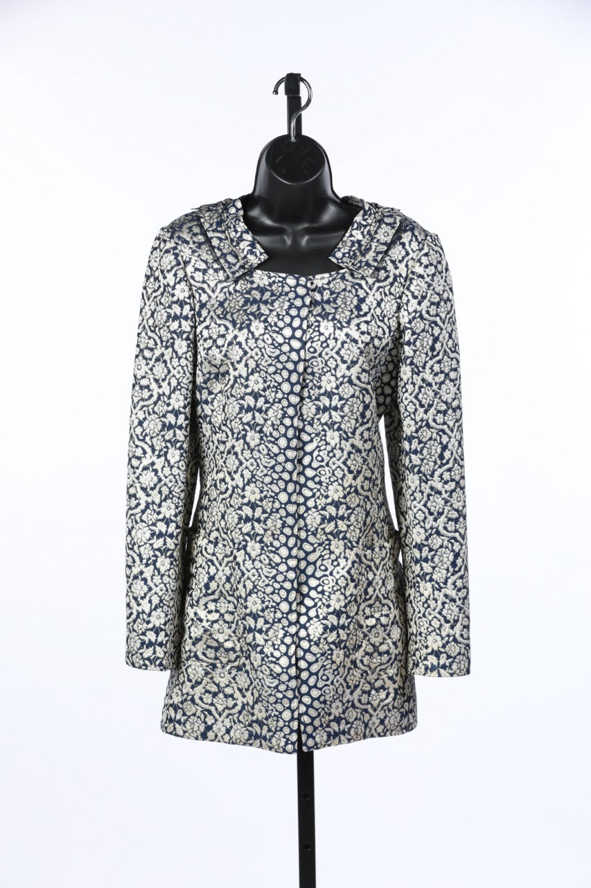 Carolina Herrera Black and Golden Brocade Printed Coat