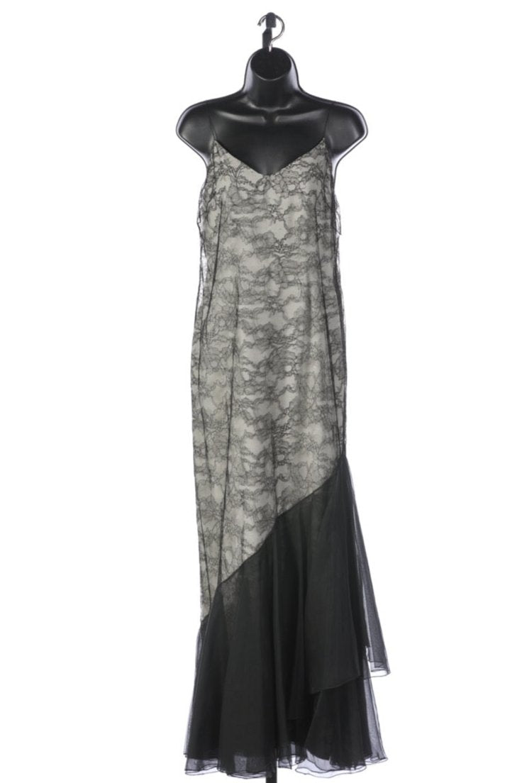 Chanel Black Lace Sleeveless Full-Length Dress with Chiffon Flare Hem