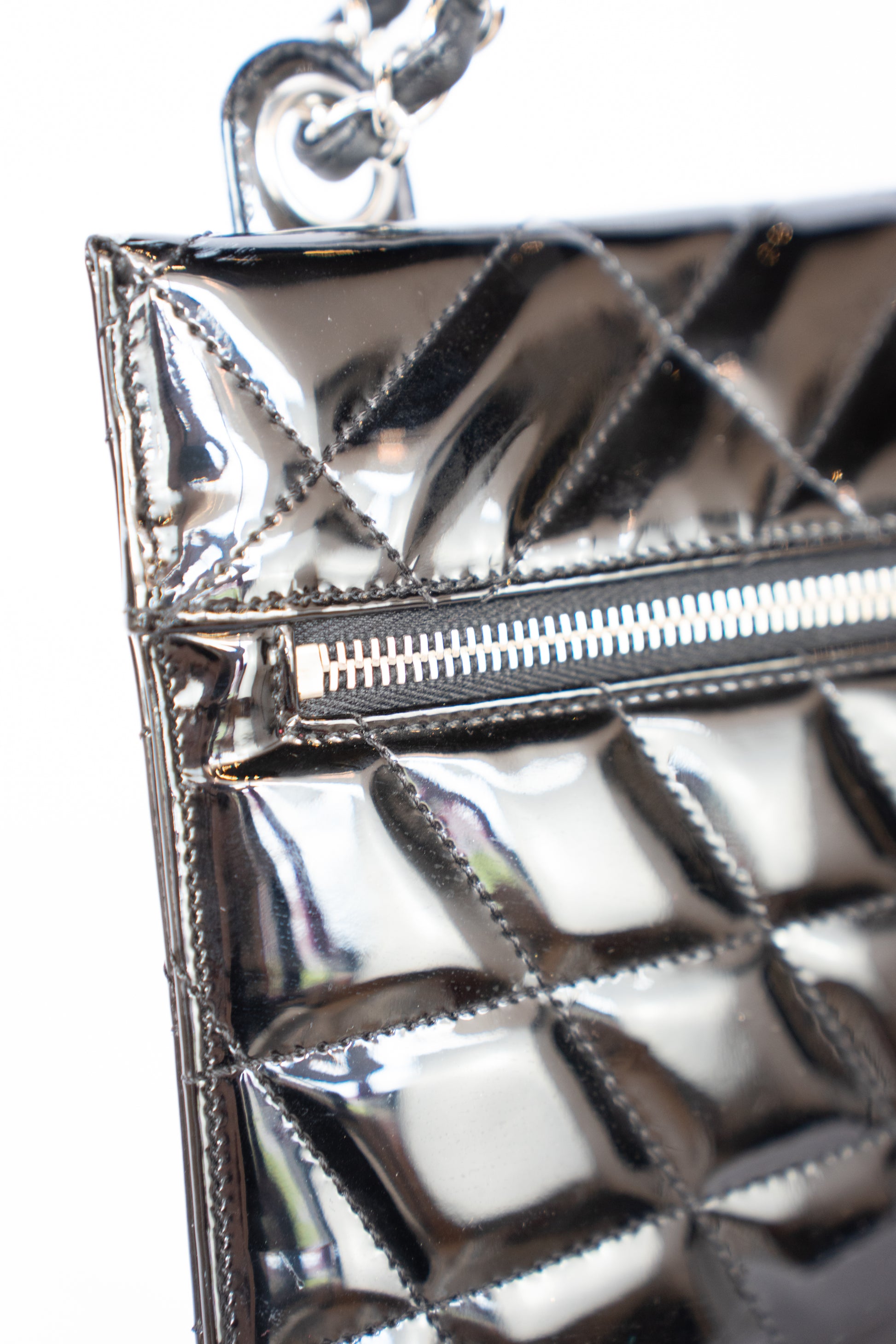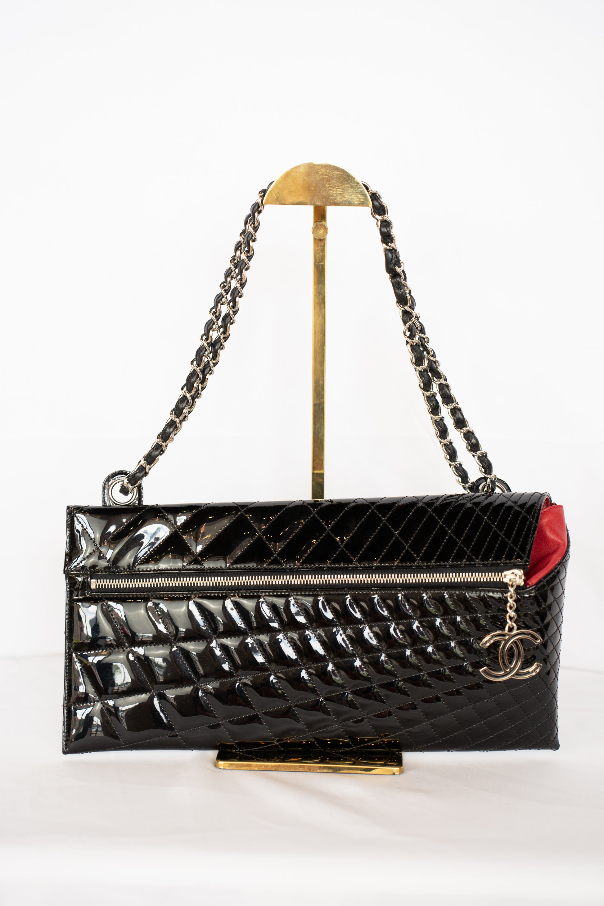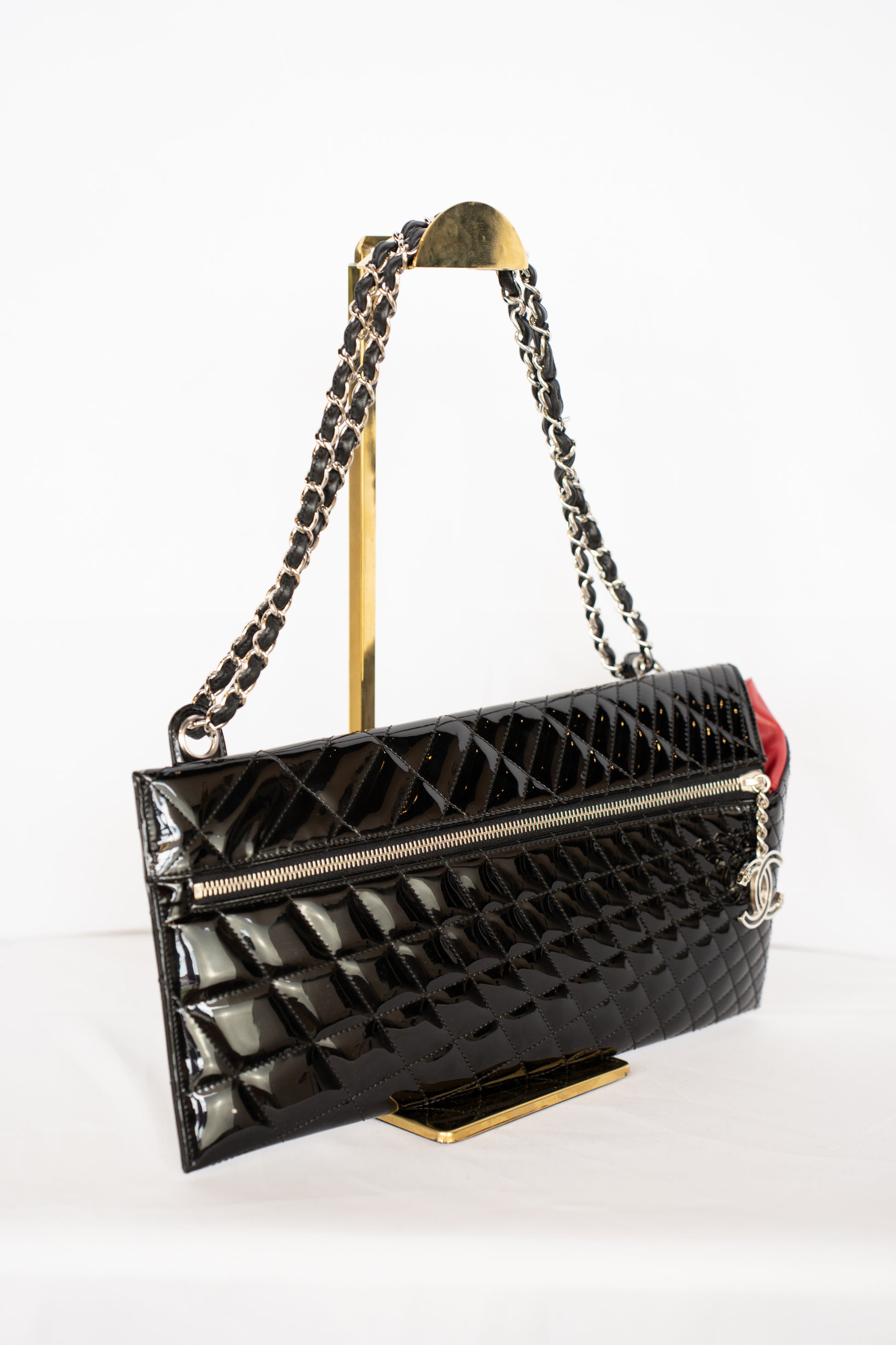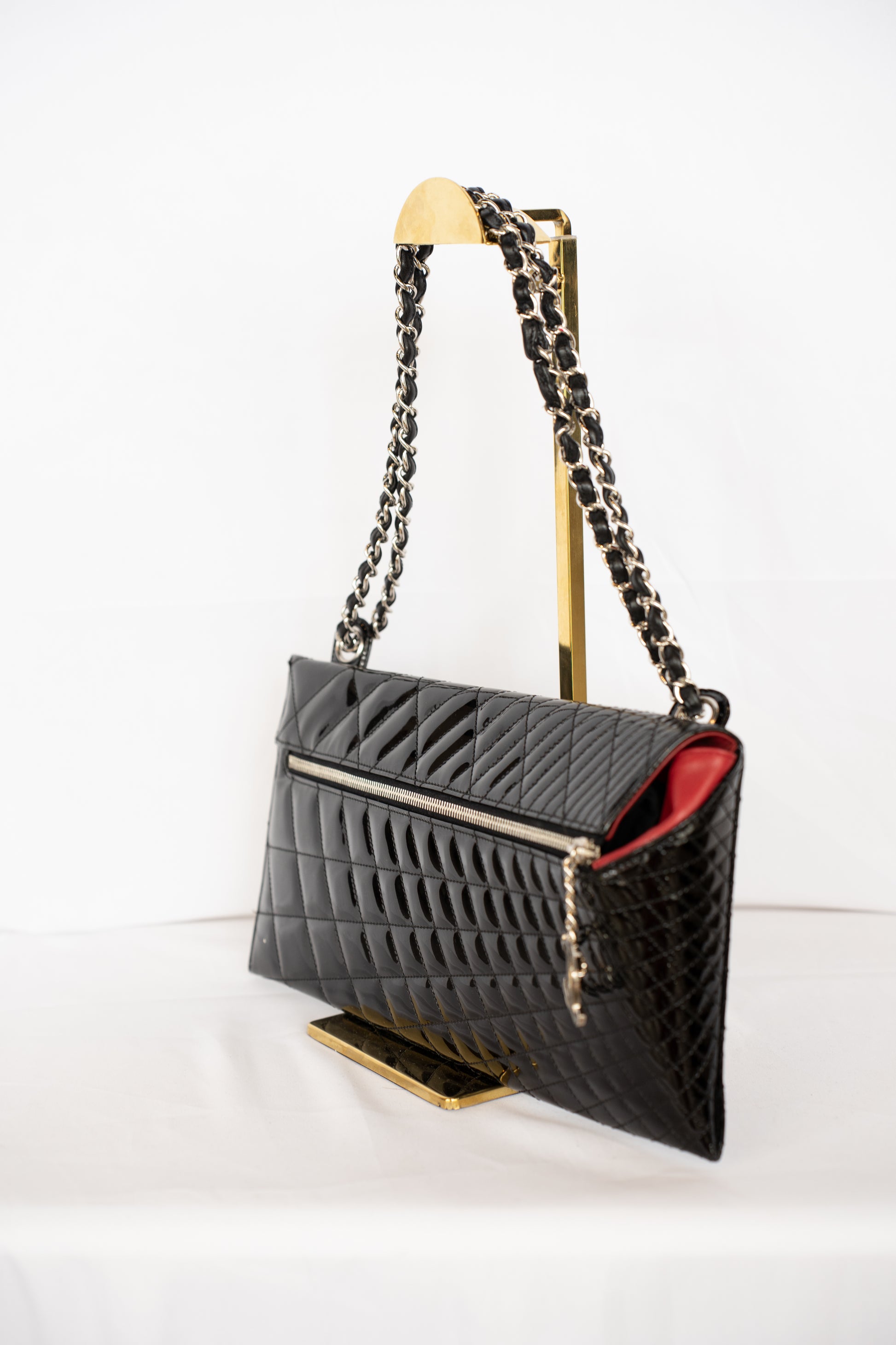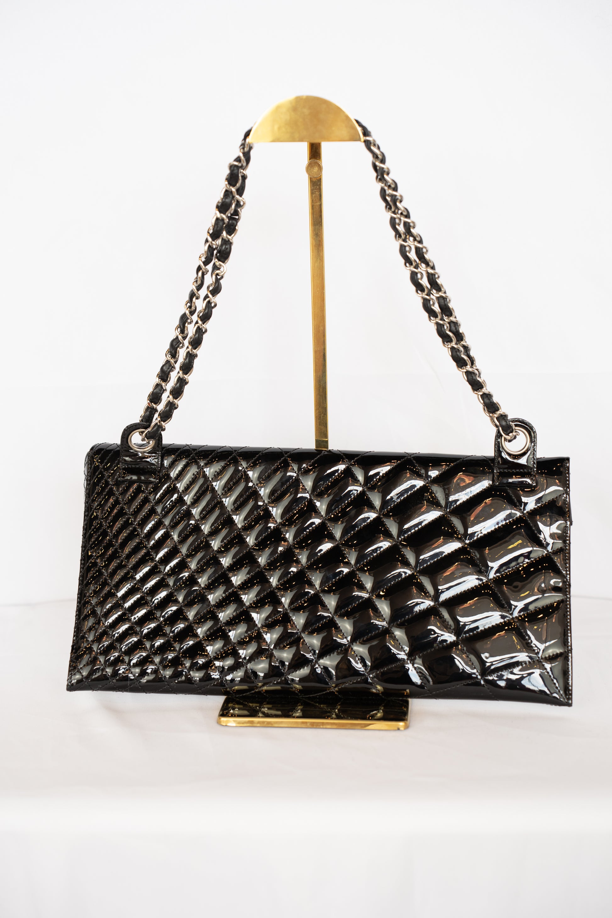 Chanel Black Patent Leather Quilted Asymmetrical Shoulder Bag